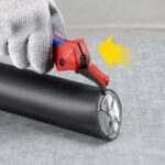 Het sikkelvormige en vervangbare mes is extra scherp en gehard en zelfs geschikt voor de taaie en harde plasticsoorten tot een diepte van 7mm
