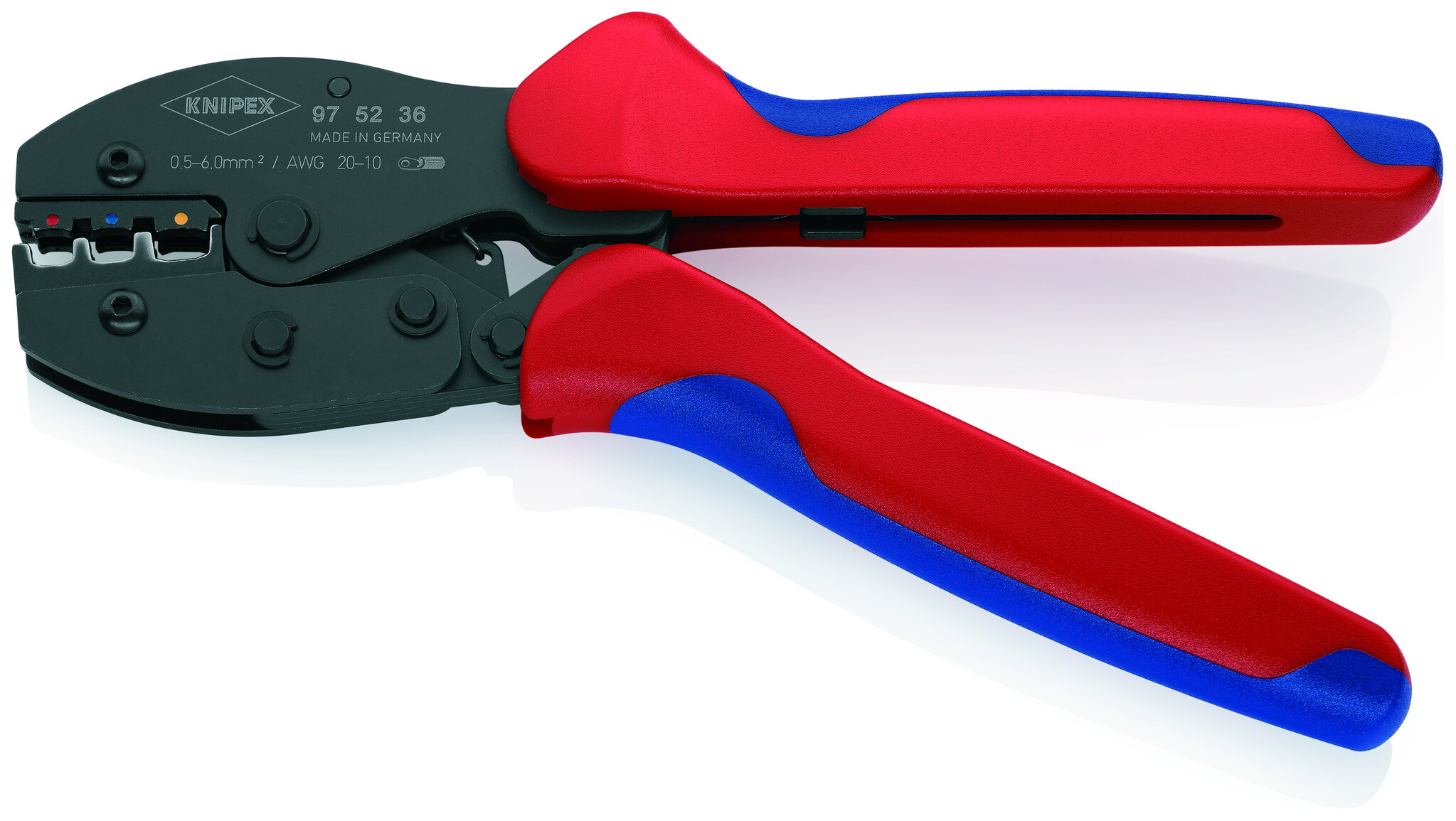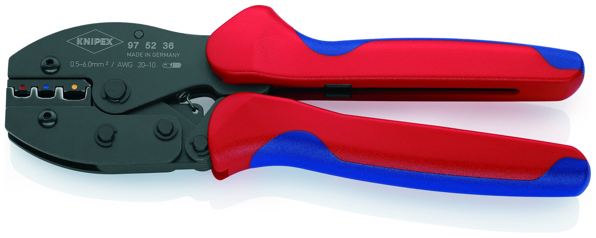 Professionele kwaliteit, made in Germany, van Knipex. Heerlijke betrouwbare tang voor het krimpen van de open of open-barrel kabelschoenen en contacten.