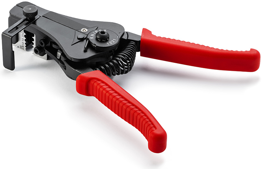 De tang is natuurlijk uitgevoerd met een metalen lengte-aanslag, erg makkelijk als je seriematig op de zelfde lengte moet strippen. Door gebruik van een drukveer in deze tang komt kan je snel en vakkundig strippen met weinig inspanning .
