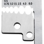 Deze uitvoering heeft 6 uitsparing in de messen voor draad 0,5-0,75 mm2 / 1,0 mm2 / 1,5 mm2 / 2,5mm2 / 4,0 mm2 en 6,0 mm2. (AWG 20-19/17/15/13/ 11/10)