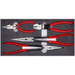 Ideale set voor professionals en veeleisende hobbyisten van KNIPEX met 4 ijzersterke tangen met ideale opberg inleg van schuimenrubber met exacte uitsparing voor uw nieuwe tangen voor plaatsing in werkplaatwagen of gereedschapslade.