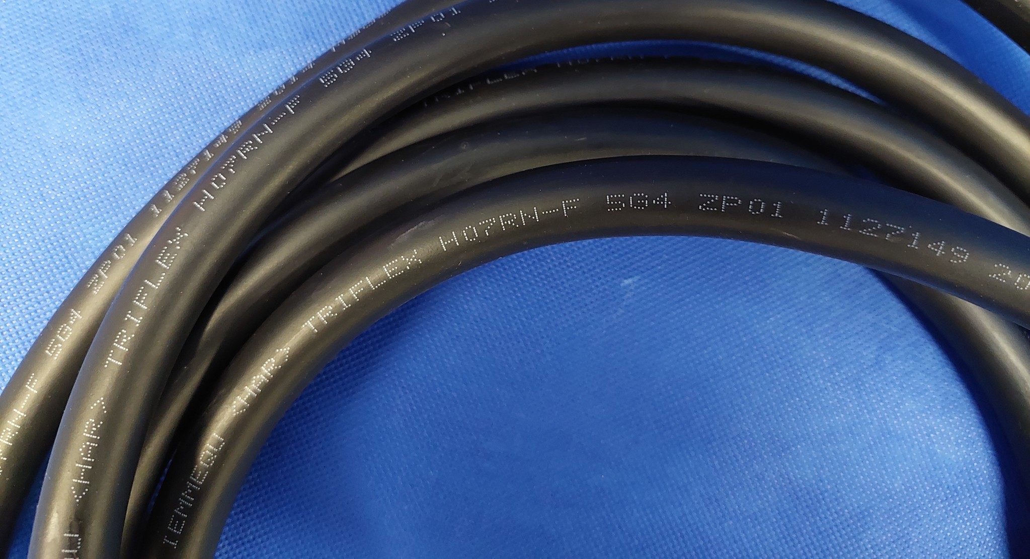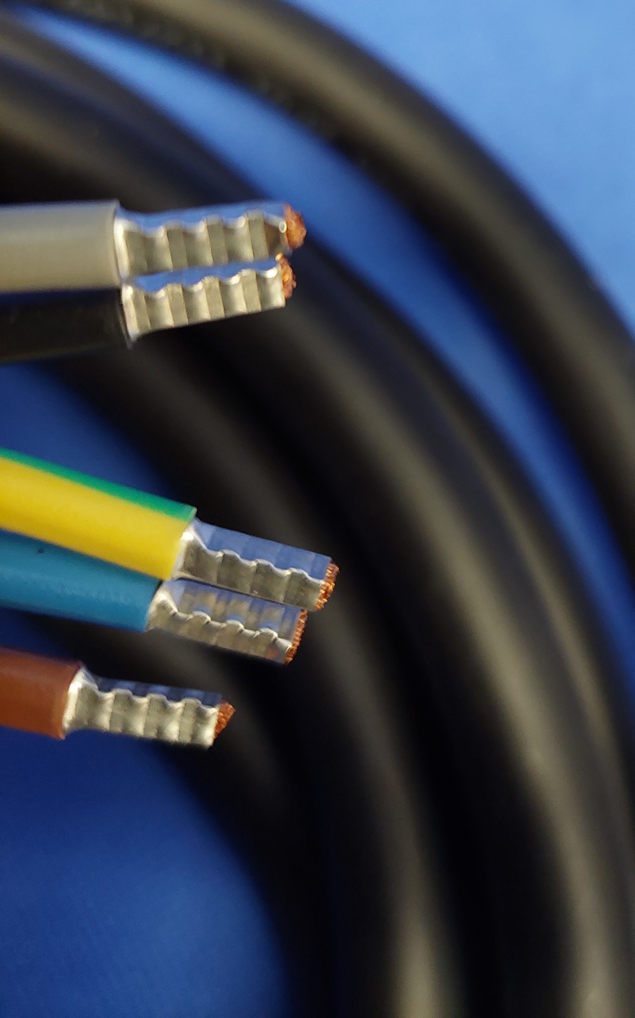 Klaar voor installatie: 5 meter kabel met gekrompen adereindhulzen en gemonteerde krachtstroomstekker.