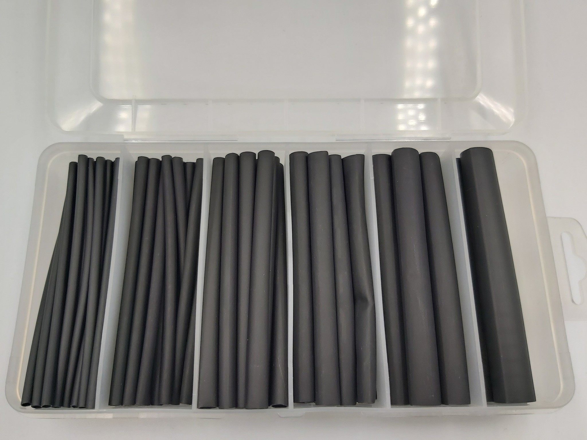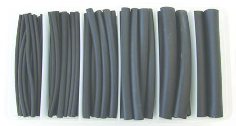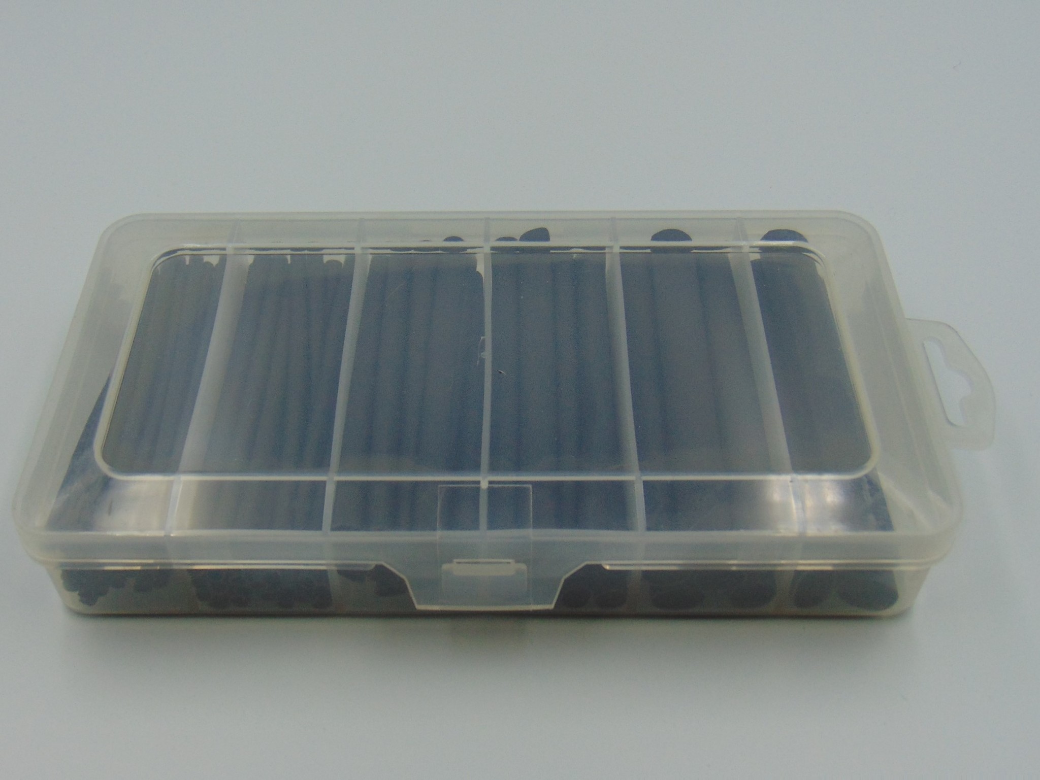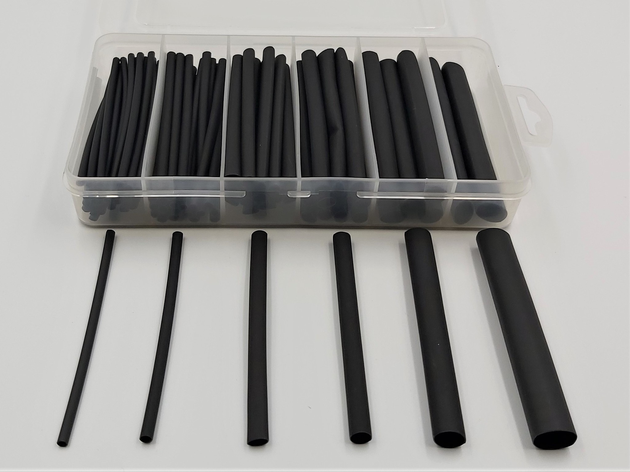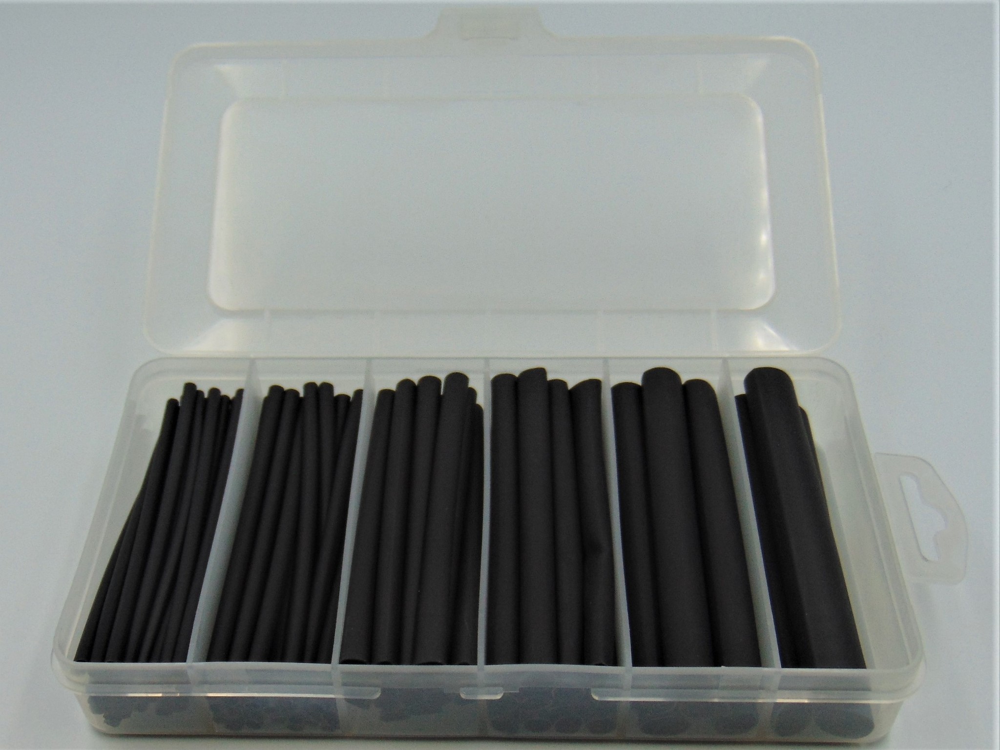 Handig bakje met de meest voorkomende maten krimpkous in lengte van minimaal 9,5cm