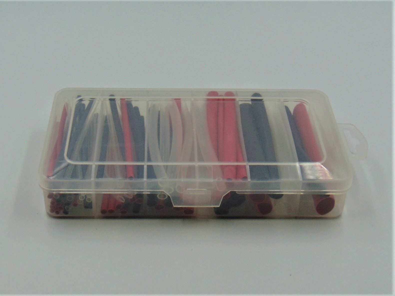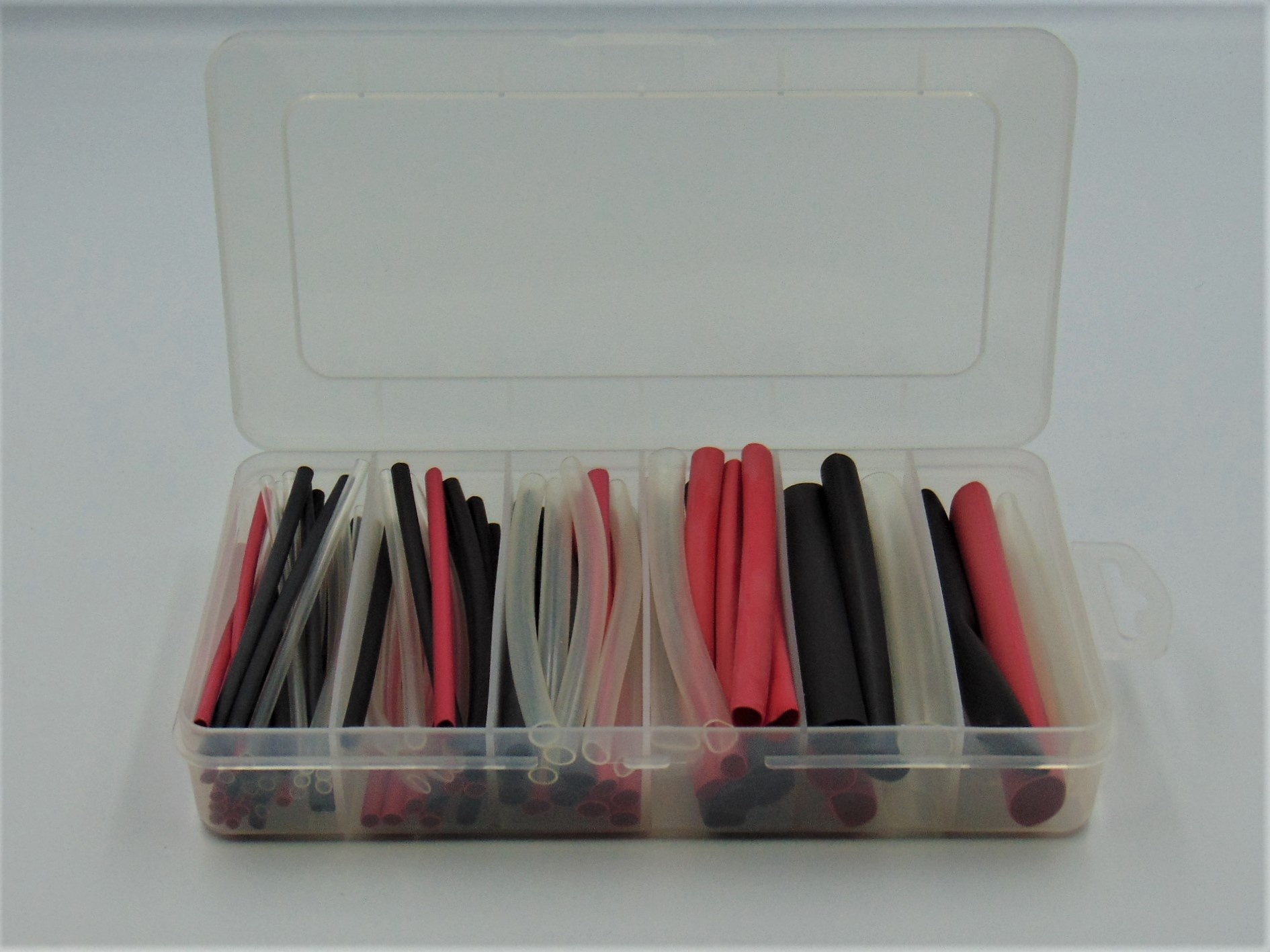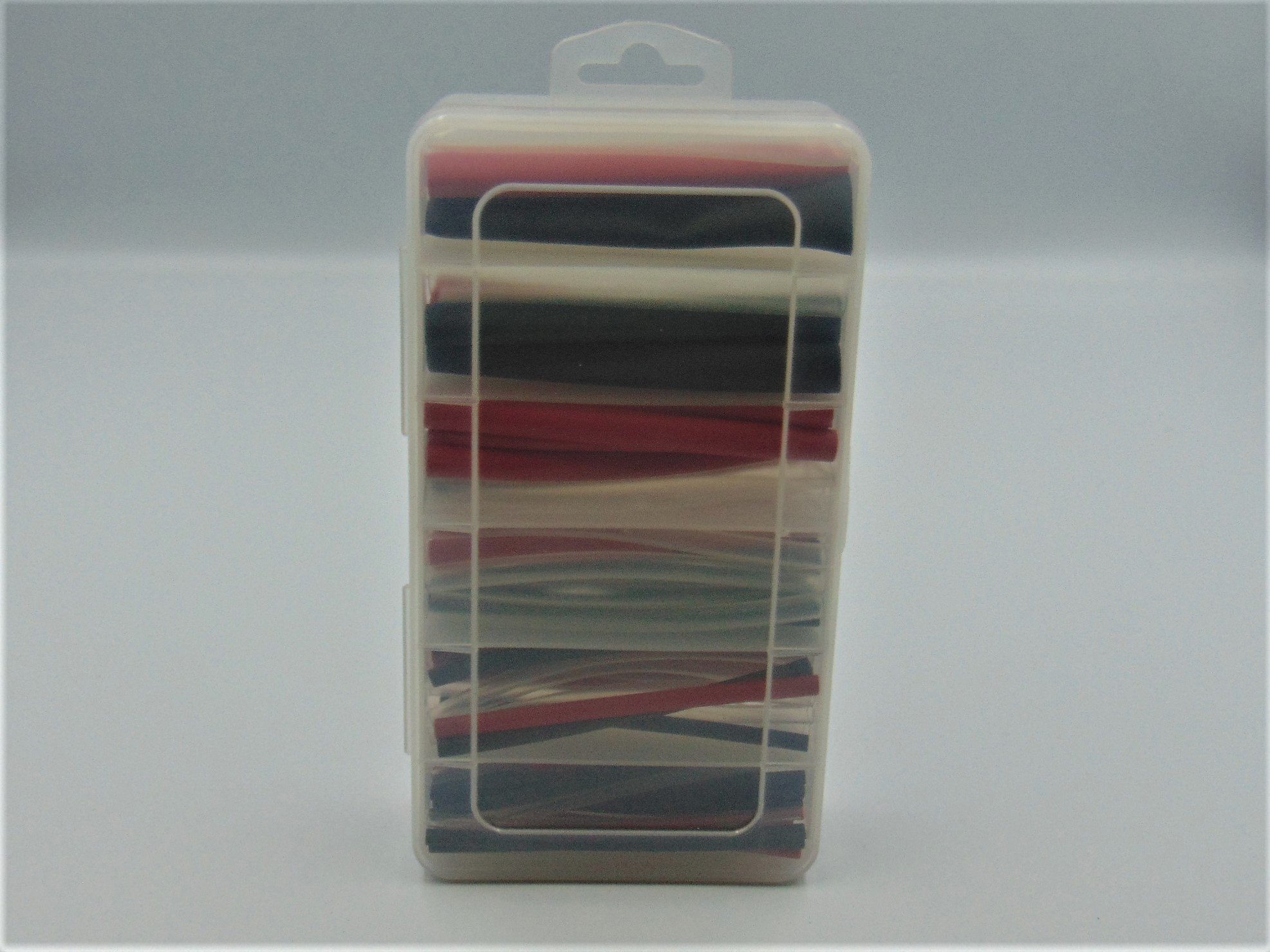 Handig bakje met de meest voorkomende maten krimpkous in lengte van minimaal 9,5cm
