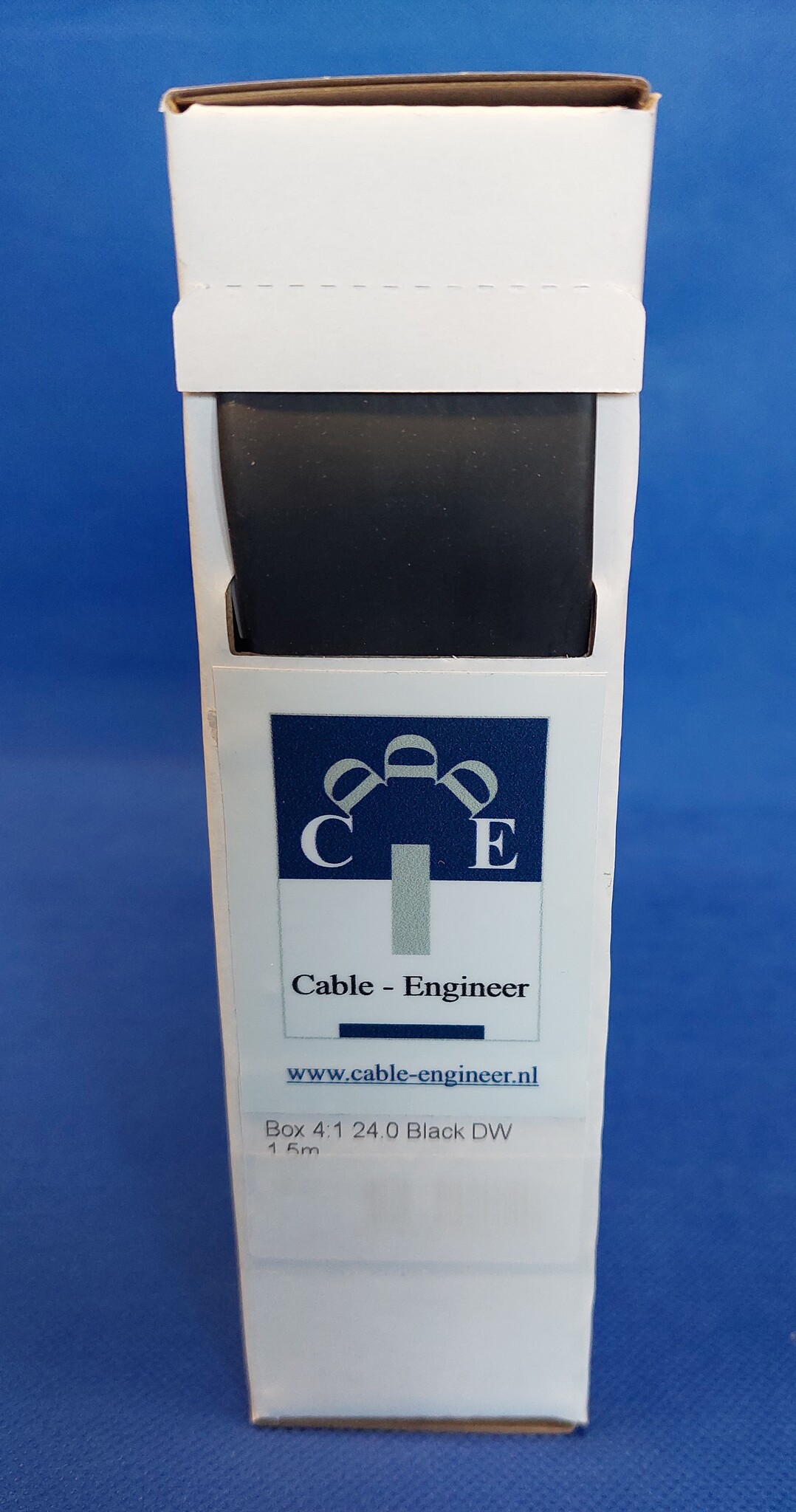 Box met 1,5 meter dubbelwandige krimpkous met lijm. Ø 24,0 / 6 mm met krimpratio : 4:1 - Zwart