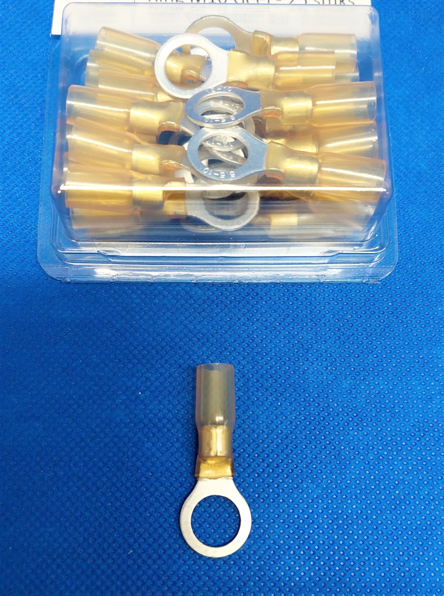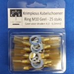 Waterdichte krimpkous kabelschoenen Ring M10 Geel voor draden van 4,0-6,0 mm2 - 25stuks