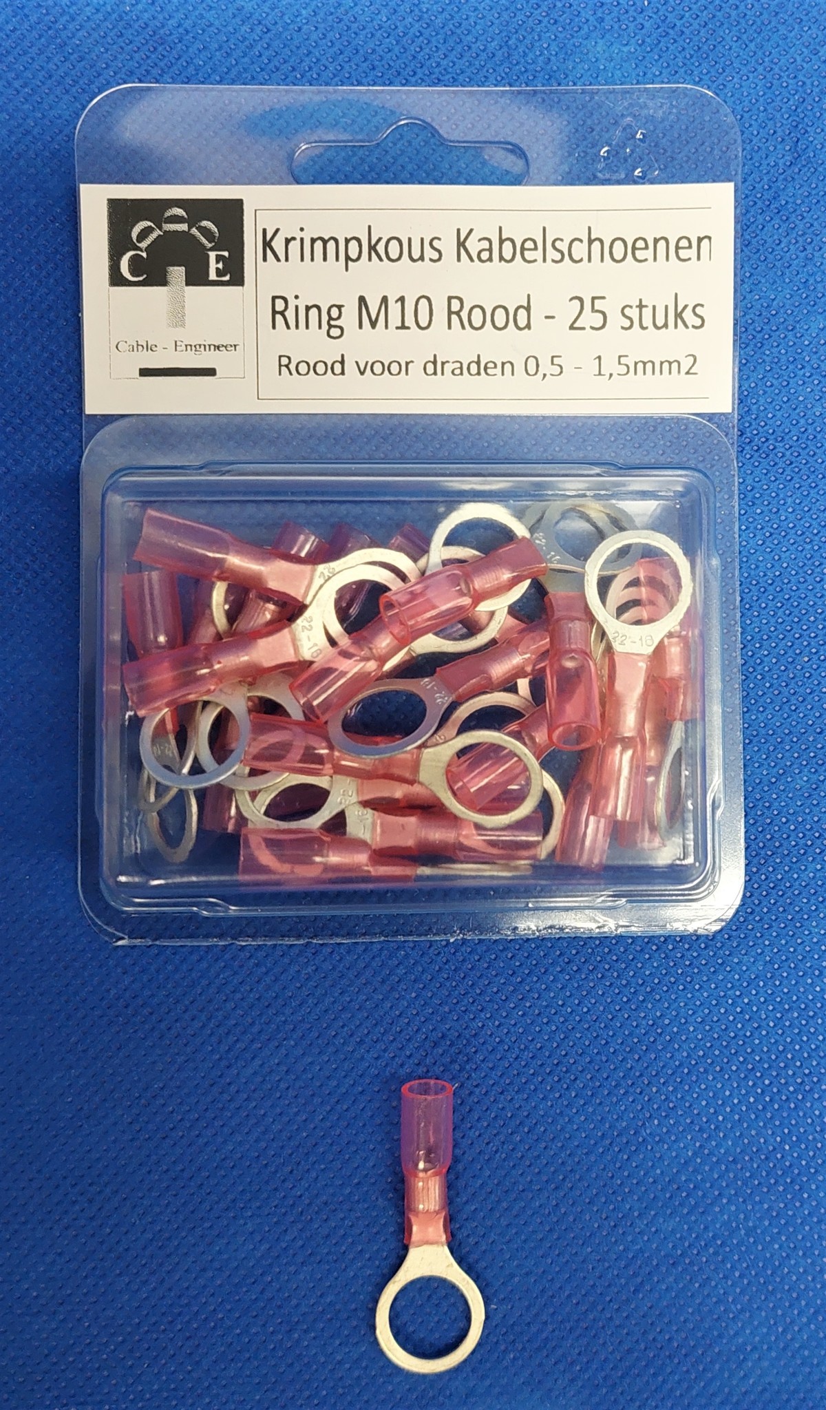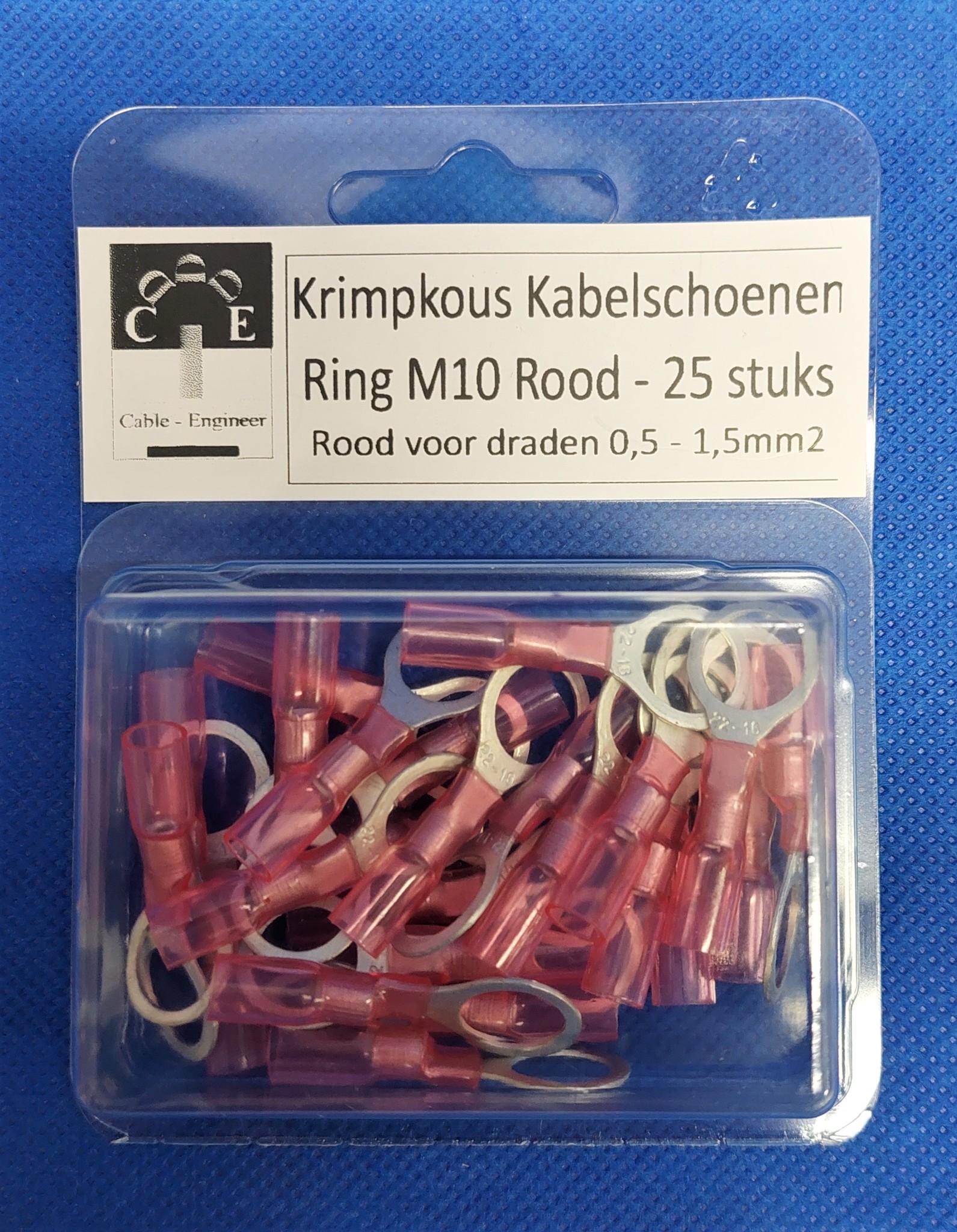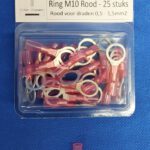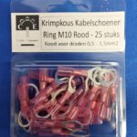 Waterdichte krimpkous kabelschoenen Ring M10 Rood voor draden van 0,5 - 1,5mm2 - 25stuks
