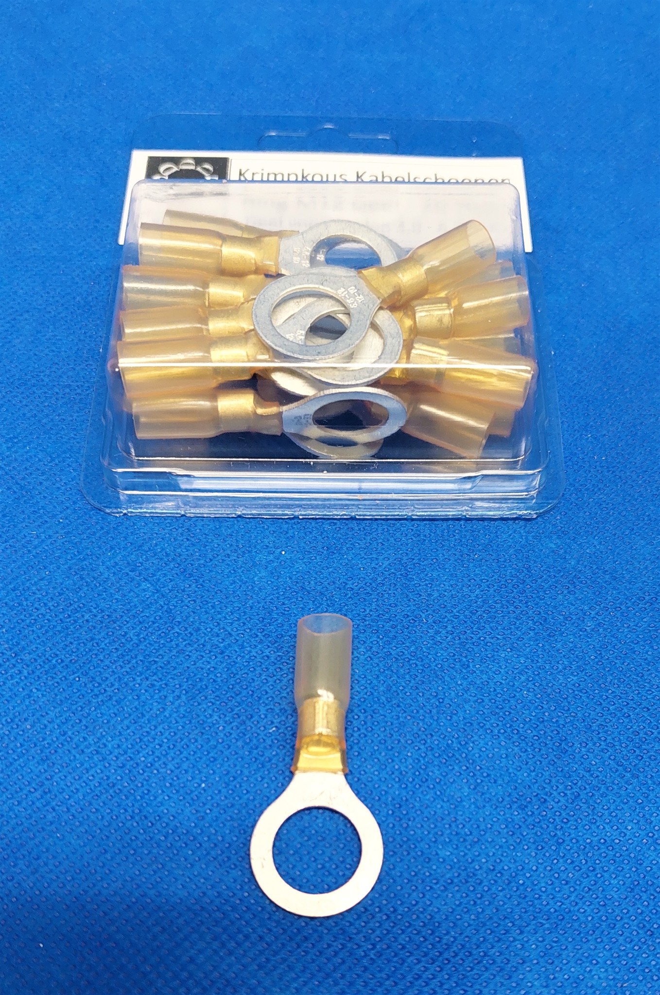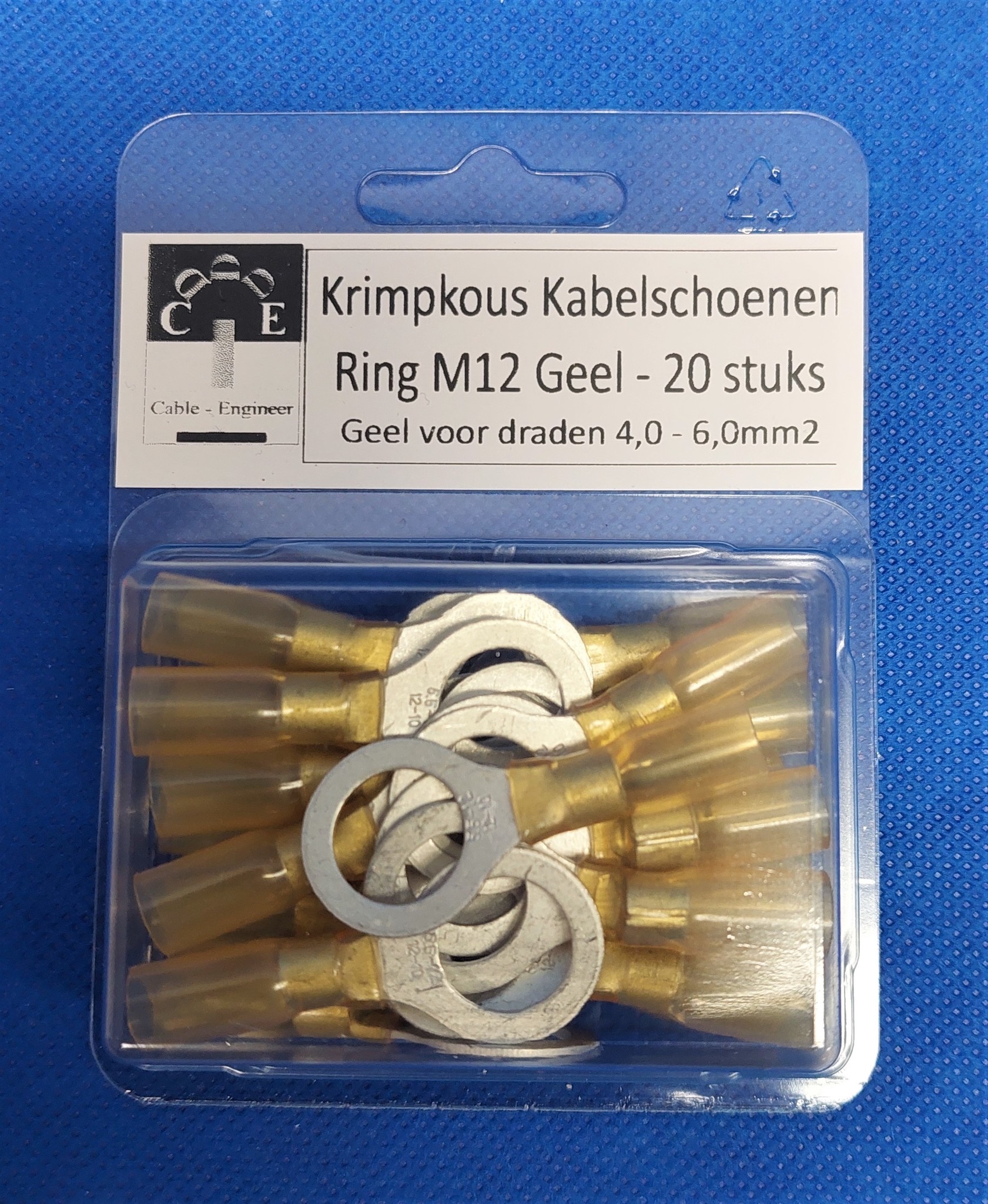 Waterdichte krimpkous kabelschoenen Ring M12 Geel voor draden van 4,0-6,0 mm2 - 20stuks