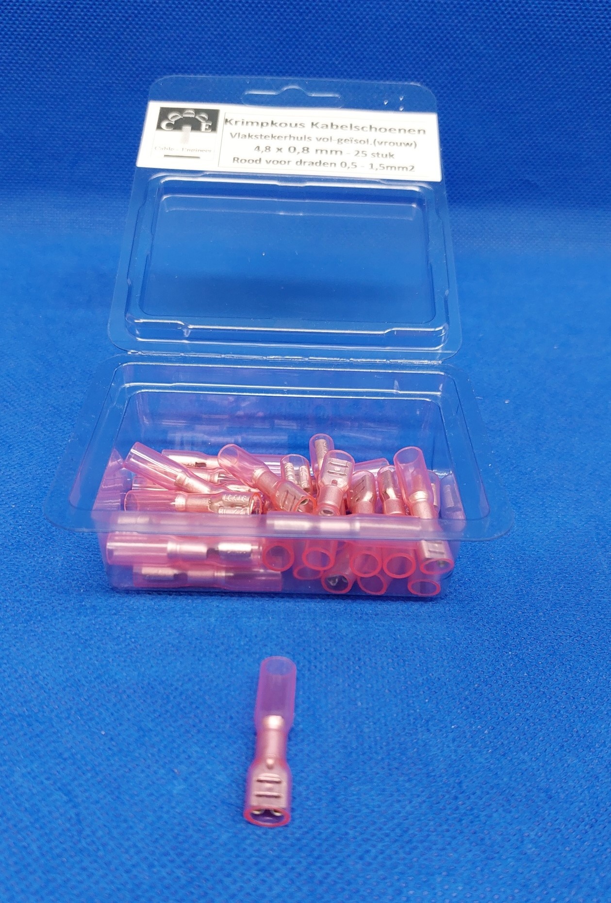 Vrouwelijke vlakstekerhuls Rood 4,8 x 0,8 vol-geïsoleerd (faston):