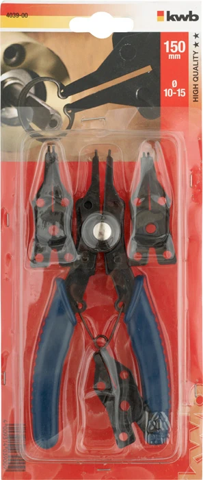 KWB Borgveertang-set met 4 verwisselbare bekken voor binnen- en buitenringen.
