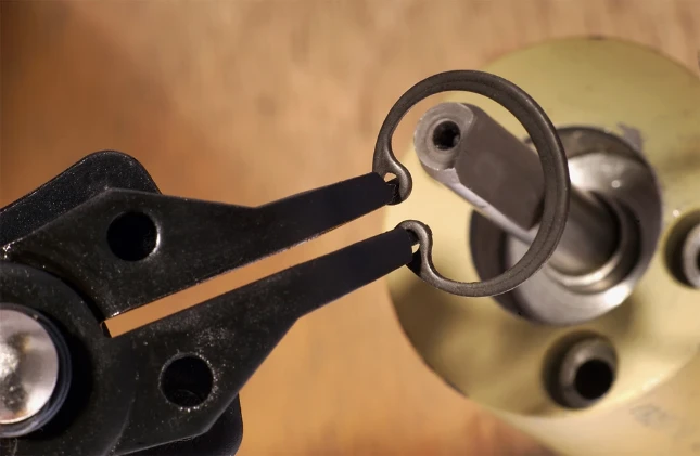 Eenvoudige maar zeer handige en ruimtebesparende tang voor het plaatsen en verwijderen van buiten- en binnen- borgveren of snapringen.