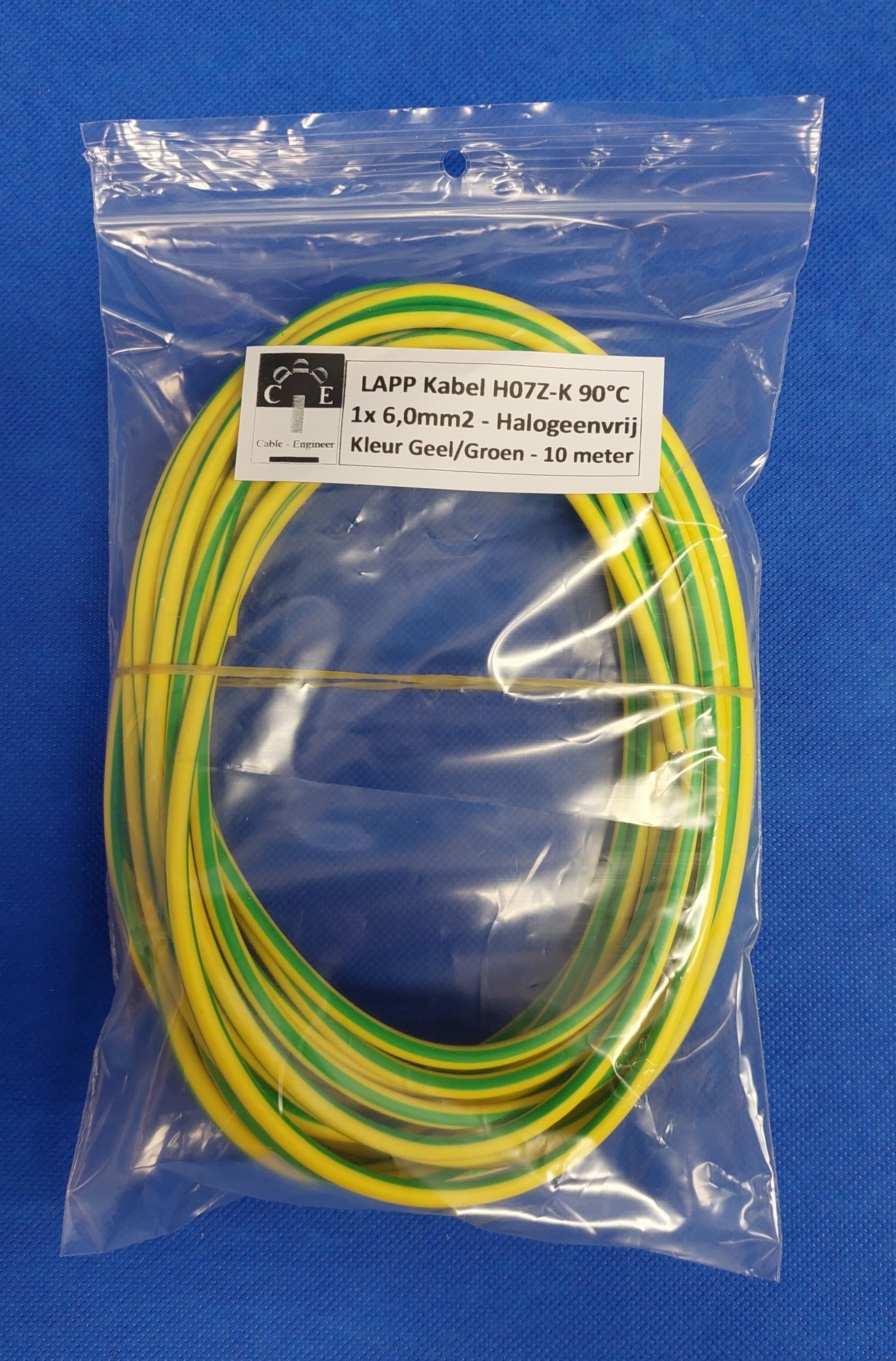 LAPP montagekabel H07Z-K -90°C - 1x 2,5mm2 - Kleur Geel/Groen - halogeenvrij - per 10m. - code 4726014 - Nominale spanning 450 - 750V.