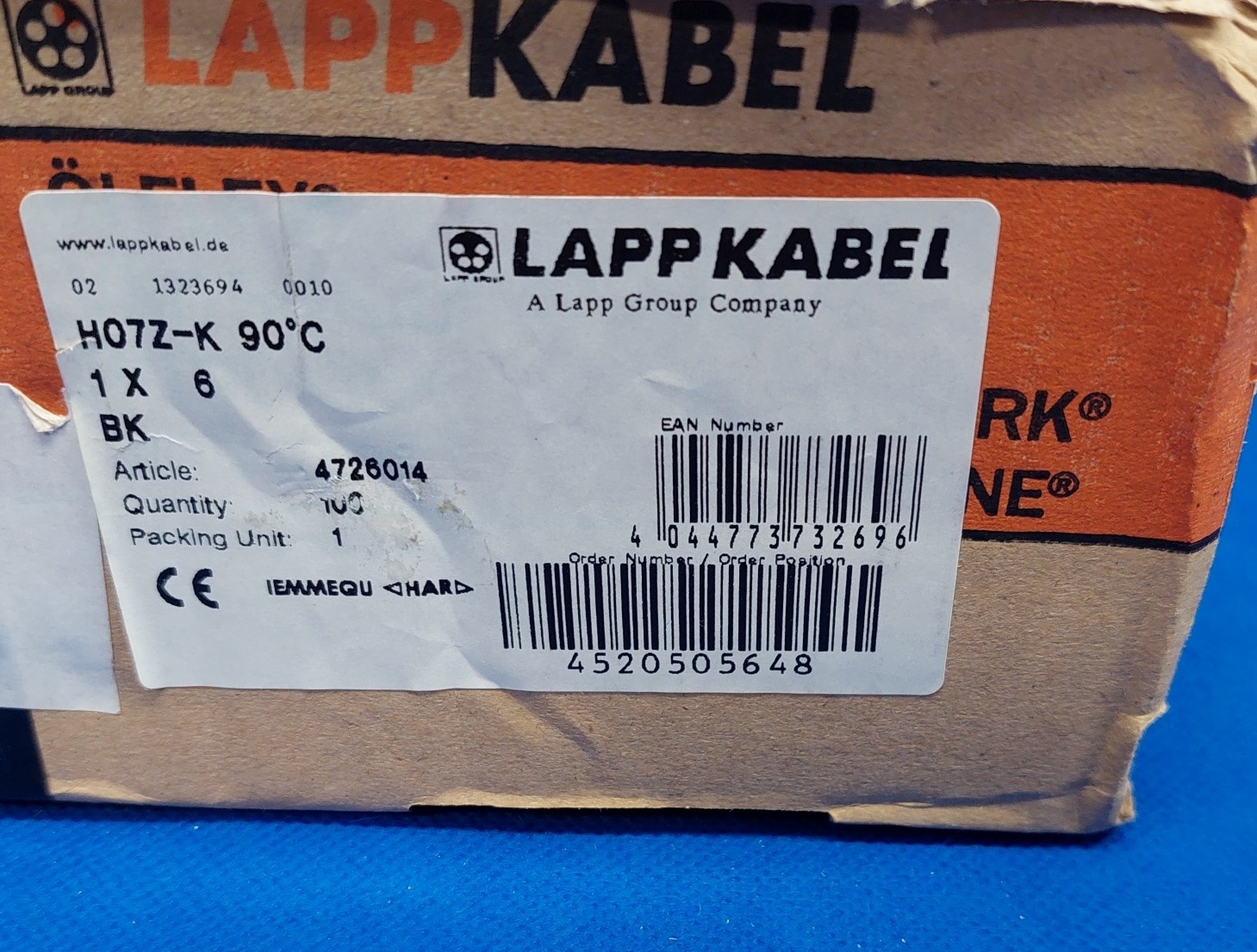 Lapp H07Z-K 1x 6,0mm2 montagedraad - Zwart - code 4726014 - halogeenvrij - 100 meter gerold