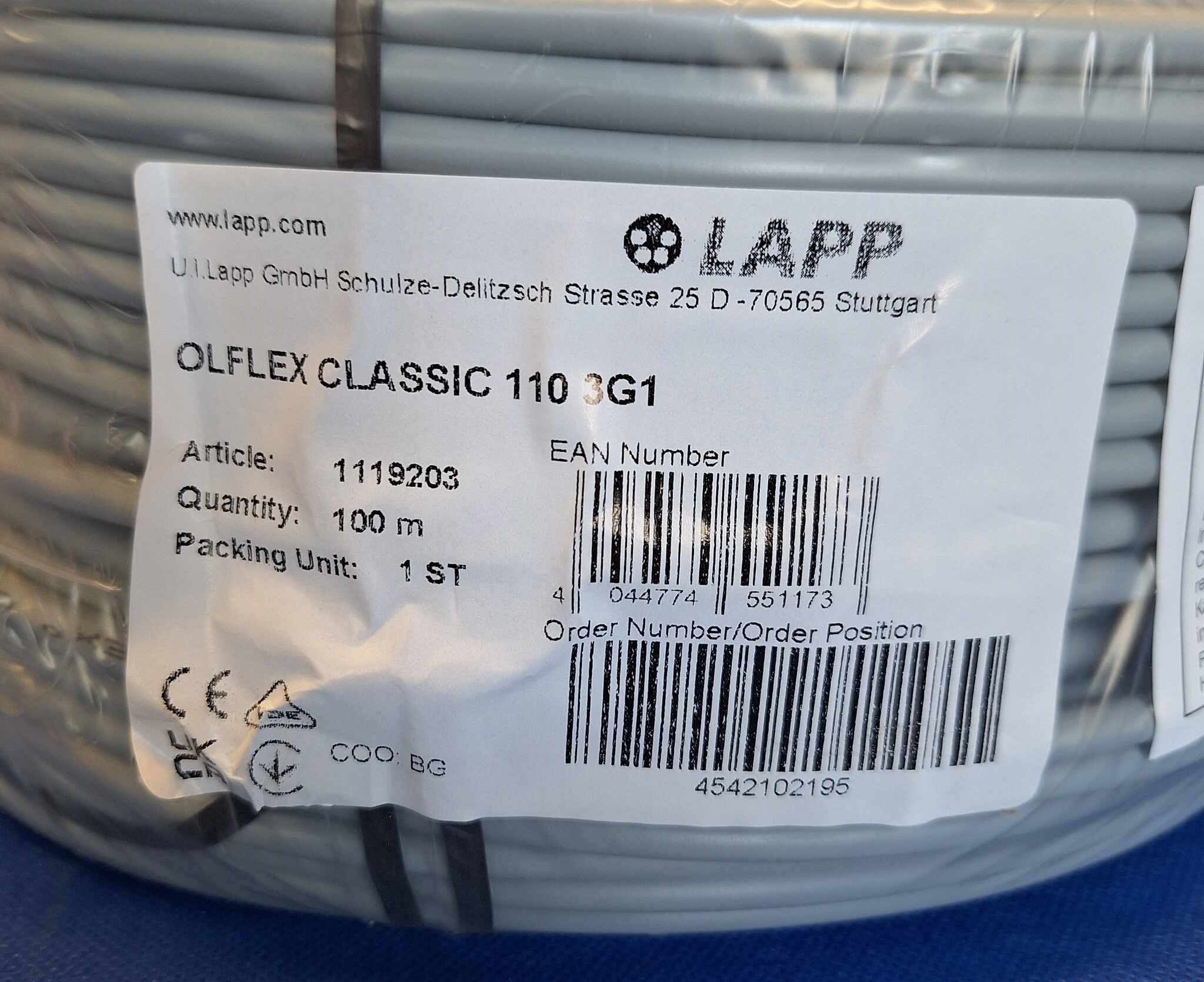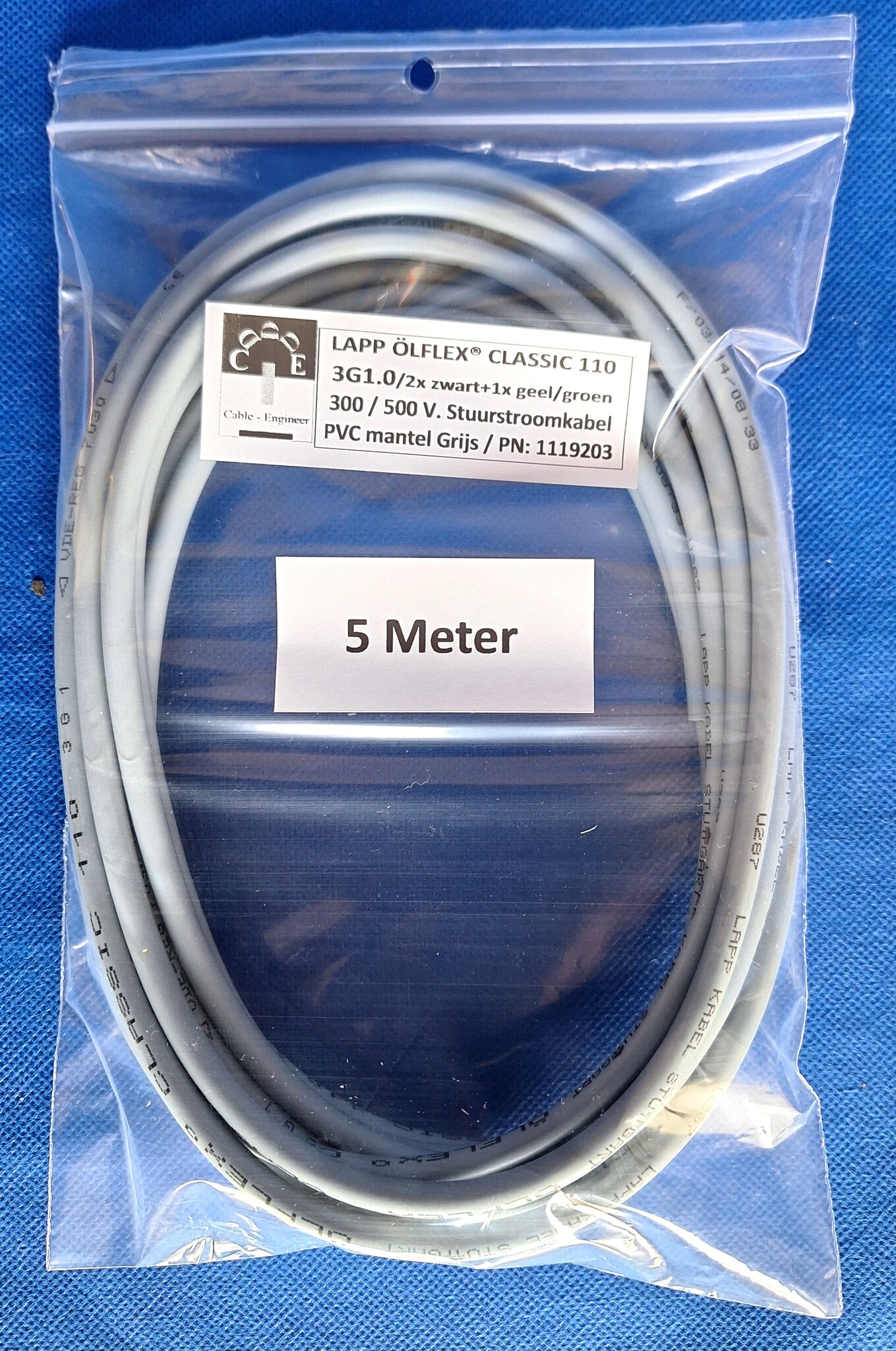 - Stuurstroomkabel van LAPP: ÖLFLEX® CLASSIC 110 - 3G1 - Grijs - 100m. - 1119203
