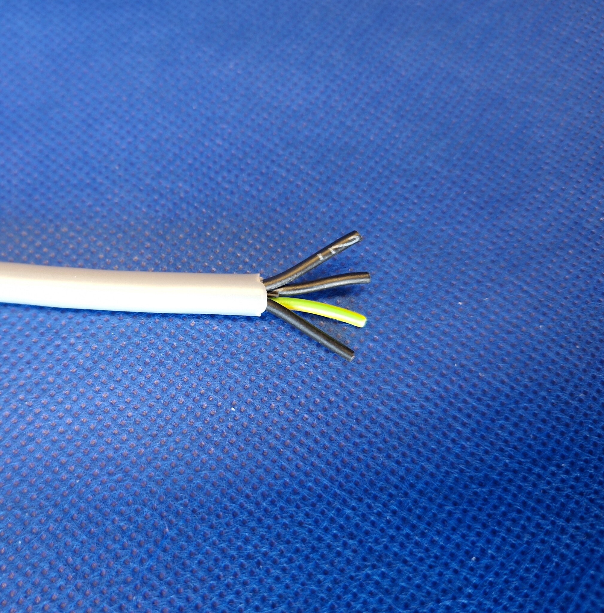 Bestaande uit 4 aders (4 x 0,5 mm²) waarvan één beschermingsgeleider Groen/Geel (aarde). De buitenmantel is van PVC in de kleur grijs.