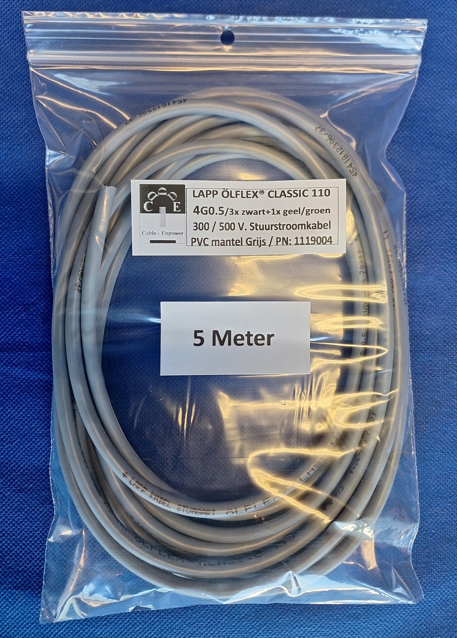 - Stuurstroomkabel van LAPP: ÖLFLEX® CLASSIC 110 - 4G0.5 - Grijs - 100m. - 1119004