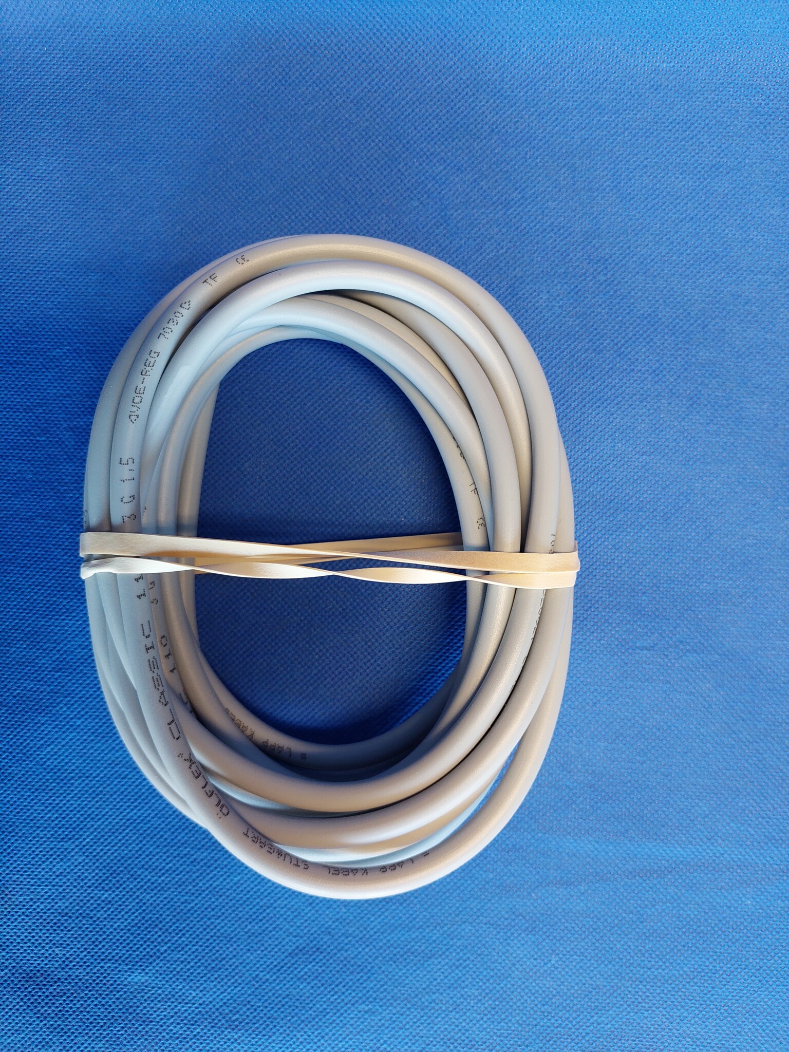 Bestaande uit 3 aders (4G x 1,50 mm²) waarvan één beschermingsgeleider Groen/Geel en een buitenmantel van PVC in de kleur Grijs