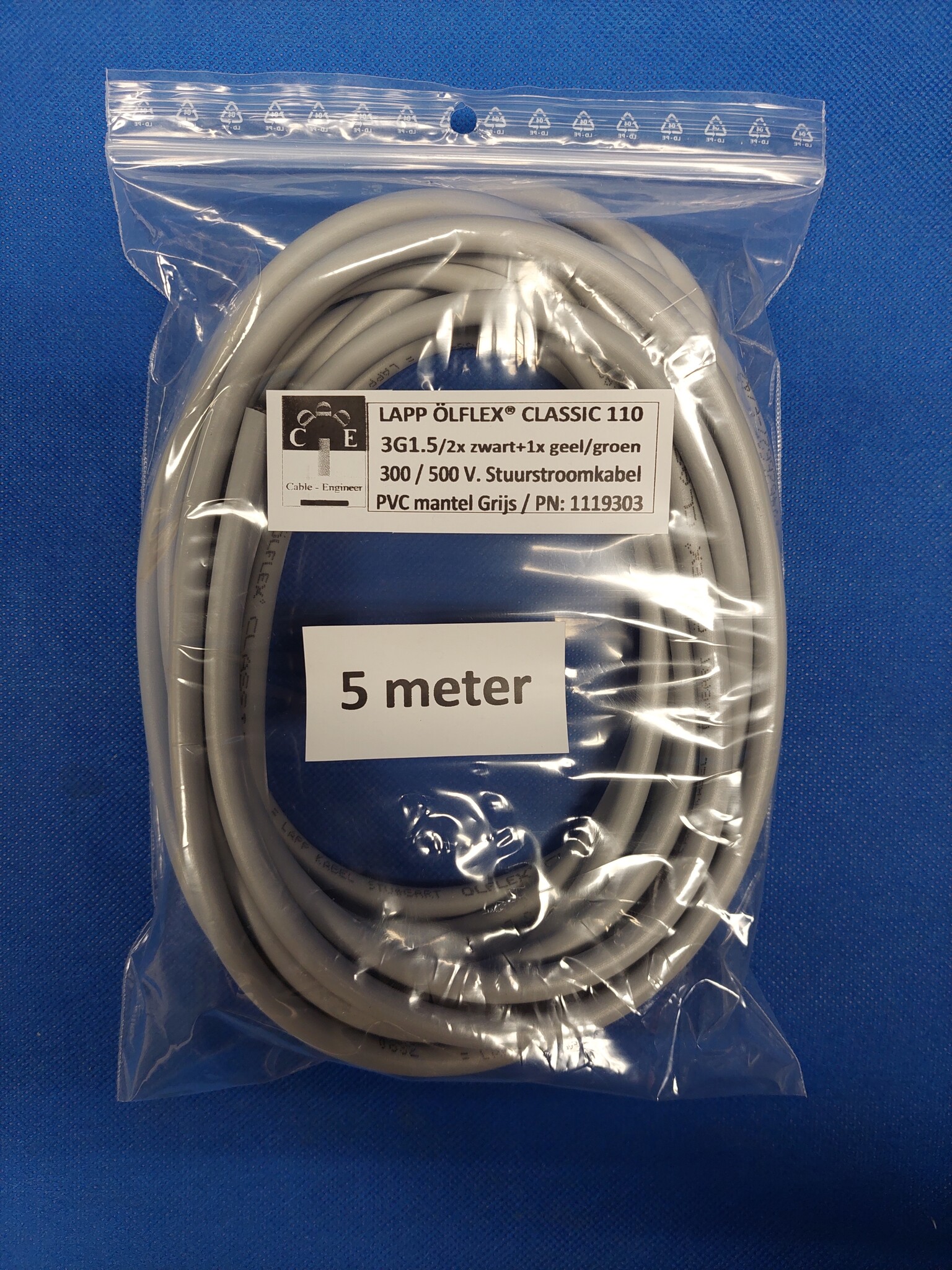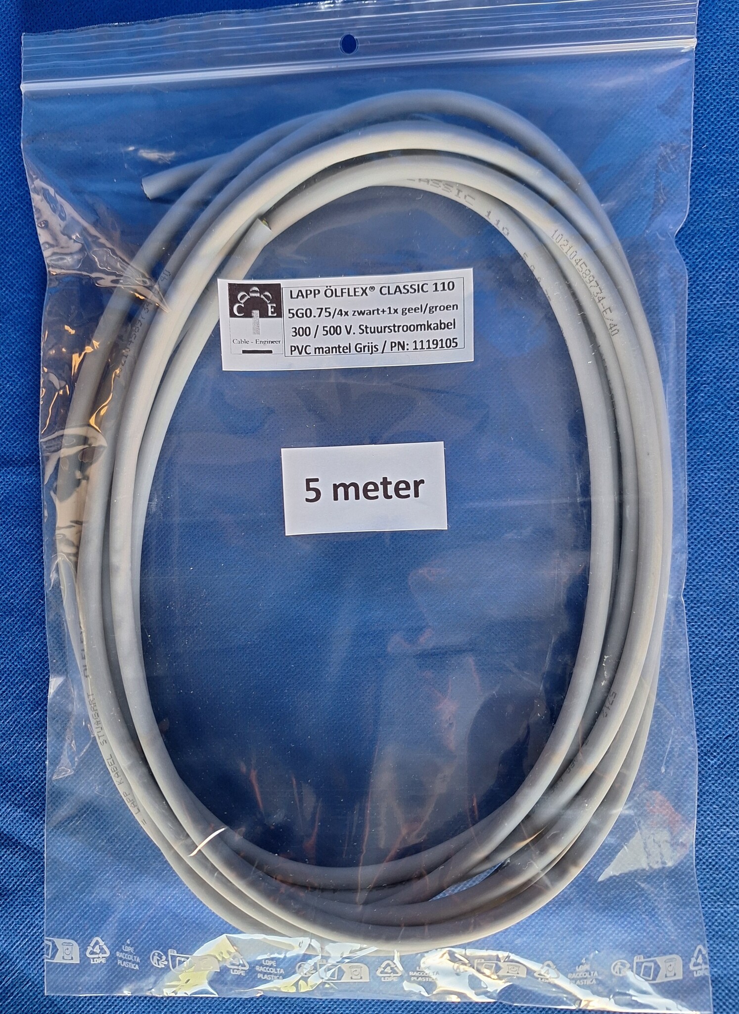 - Stuurstroomkabel van LAPP: ÖLFLEX® CLASSIC 110 - 5G0.75 - Grijs - 100m. - 1119105