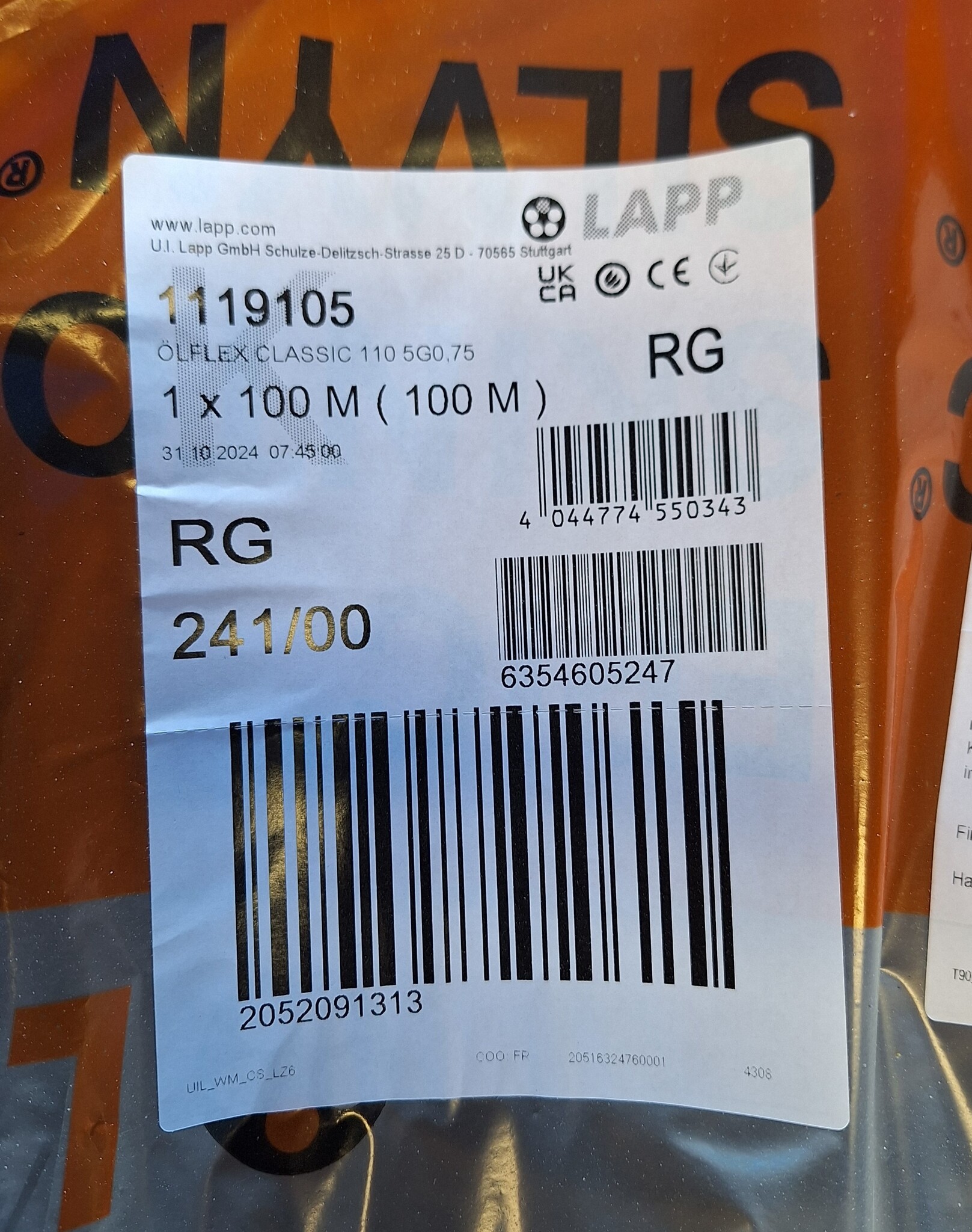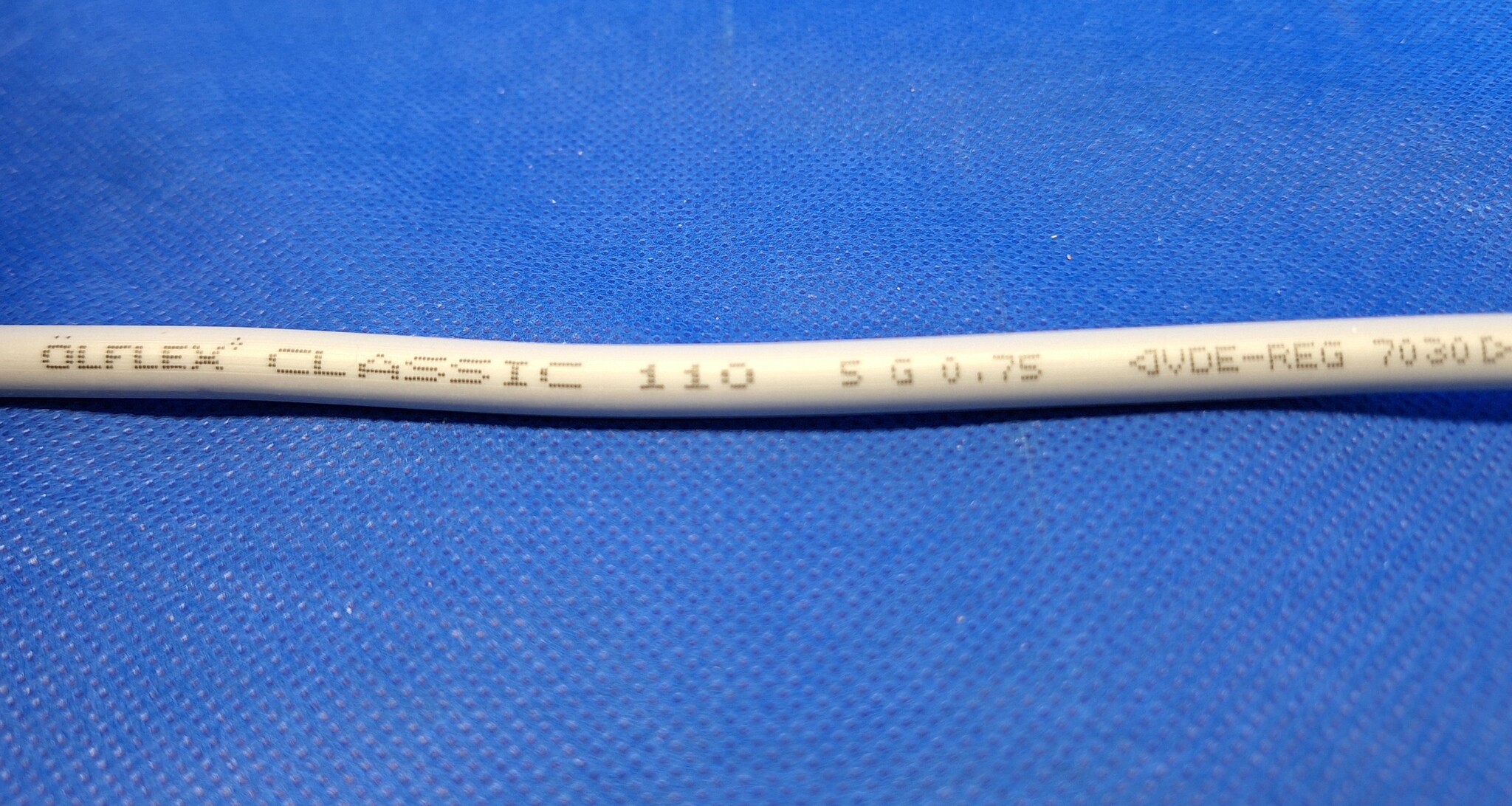 - Aantal aders en mm² per geleider: 5G x 0,75 mm²