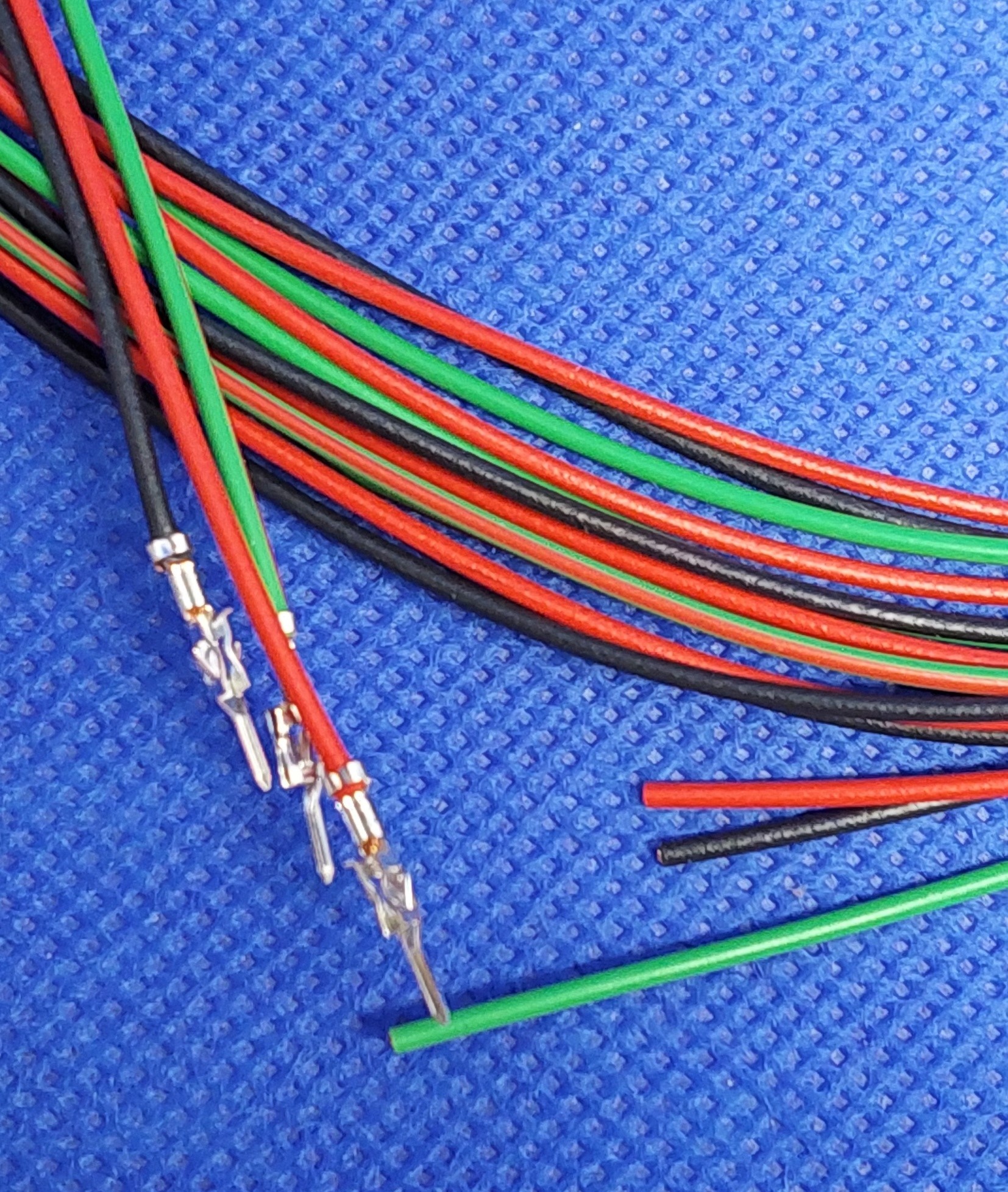 De kabel met contacten zijn nog niet in de connector geklikt waardoor je nog je eigen kleur-volgorde kan aanhouden.