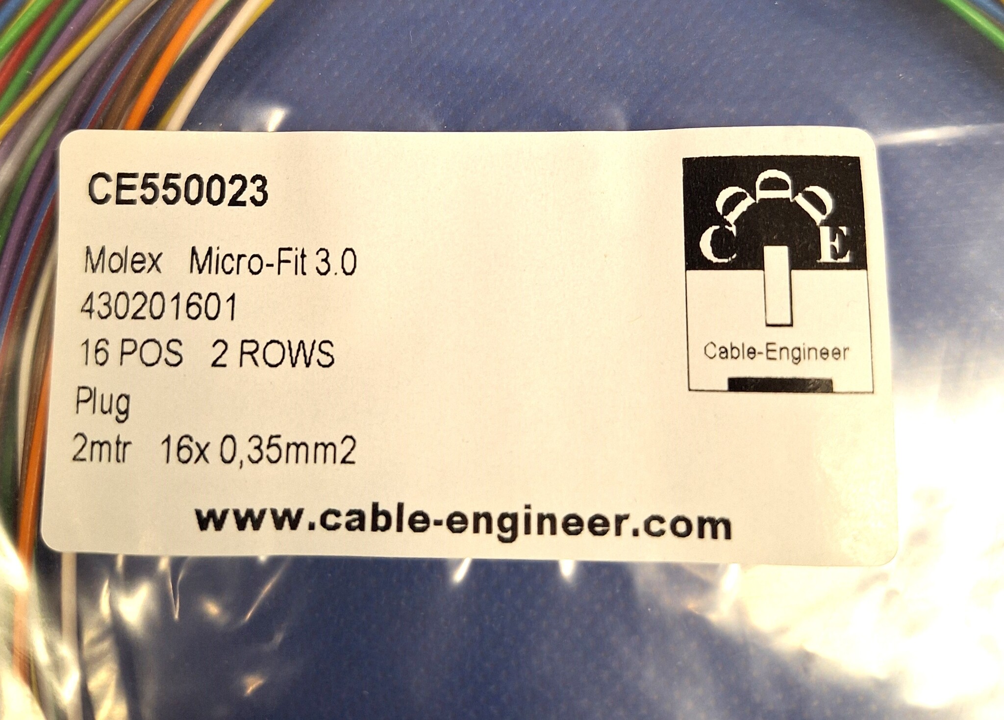 Pre-crimped Molex Micro Fit 3.0 set: 16-Pos. / 2-rij Plug Housing met 16x 2m. 0,35mm2 kabel met contacten gekrompen