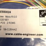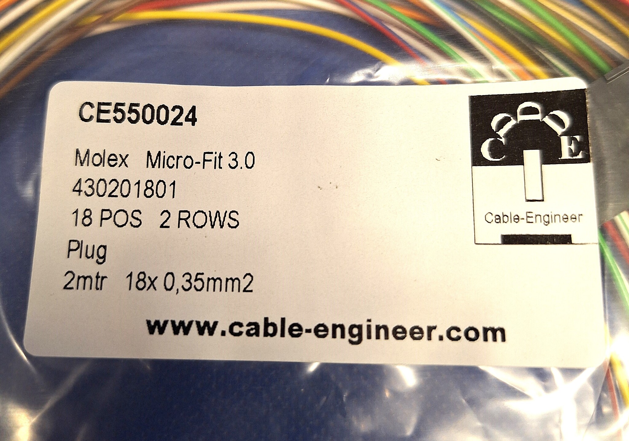 Pre-crimped Molex Micro Fit 3.0 set: 18-Pos/2-Rij Plug Housing met 18x 2m. 0,35mm2 kabel met contacten aan de kabel
