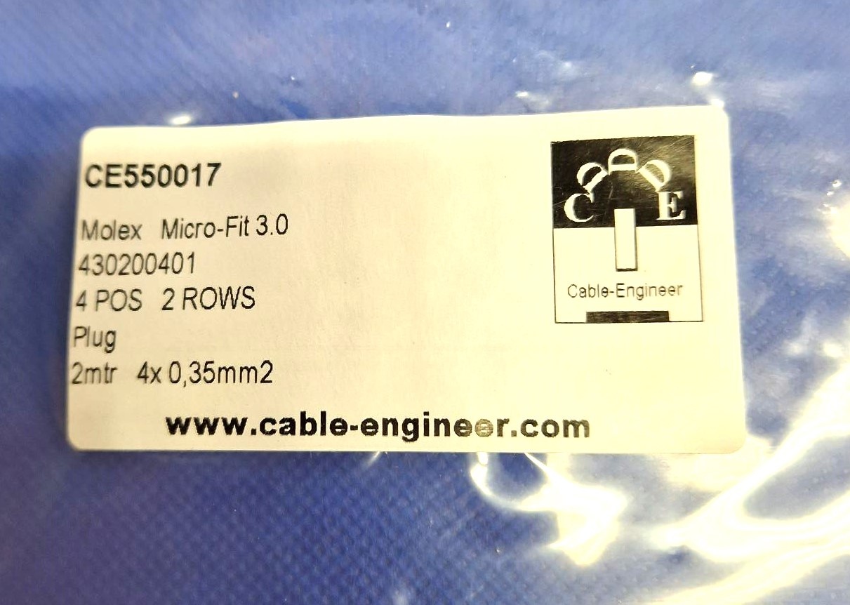 Pre-crimped Molex Micro Fit 3.0 set: 4-Pos/2-Rij Plug Housing met 4x 2m. 0,35mm2 kabel met contacten aan de kabel