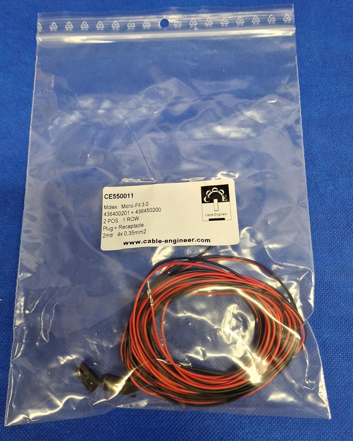 Pre-crimped Molex MicroFit 3.0 set: 3-Pos./1-Rij Plug + Receptacle Housing met 6x 2m. 0,35mm2 kabel met contacten gemonteerd
