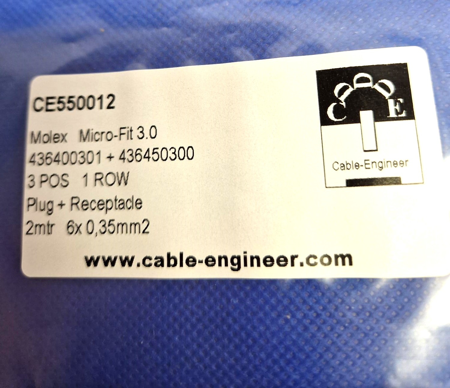 - 3x Molex Micro Fit 3.0 contact (man) 20-24AWG Molex art.nr.: 0430310001 (Pre-crimped)