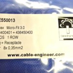 - 4x Molex Micro Fit 3.0 contact (vrouw) 20-24AWG Molex art.nr.: 430300001 (Pre-crimped)
