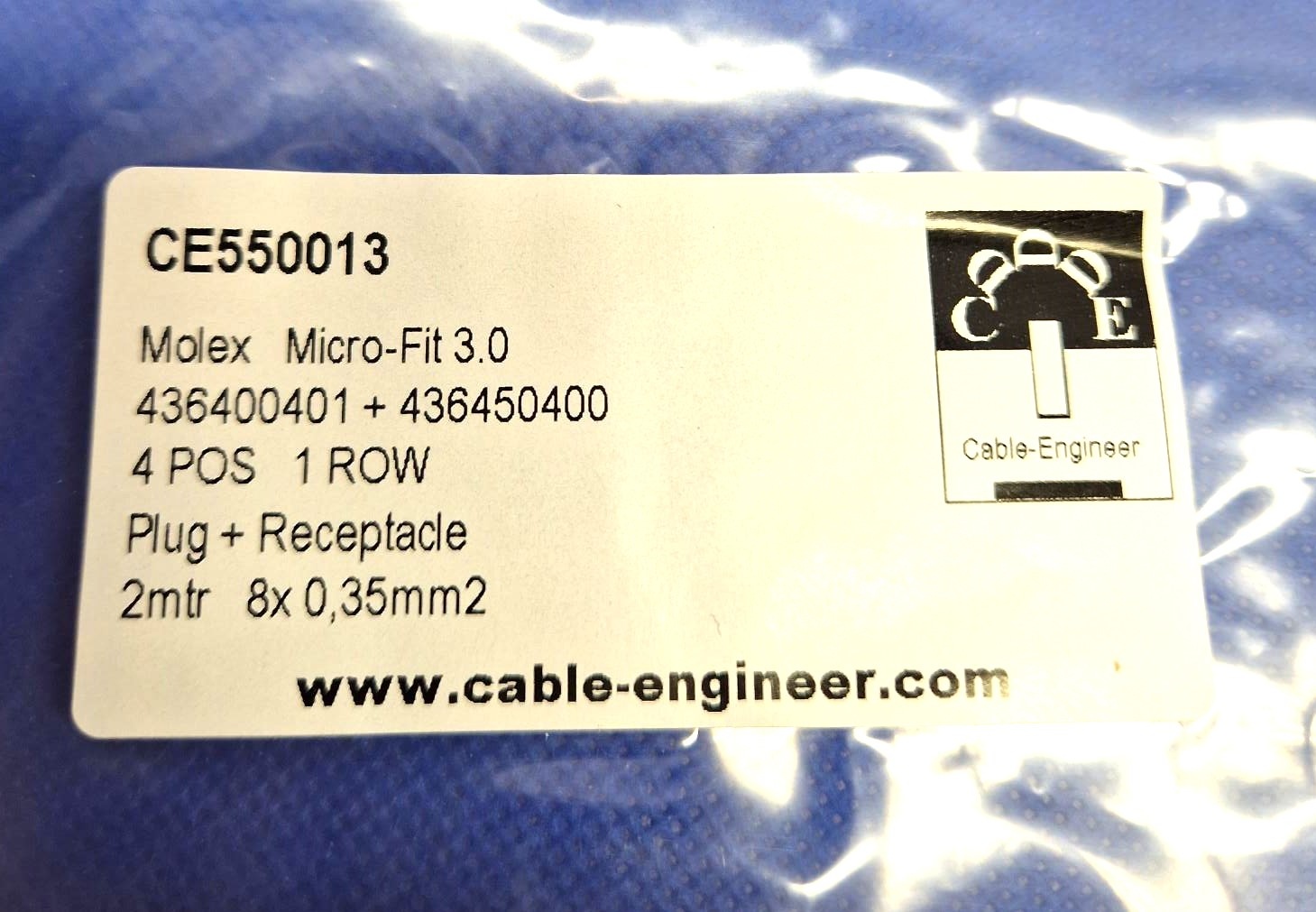 Pre-crimped Molex MicroFit 3.0 set: 4-Pos./1-Rij Plug + Receptacle Housing met 8x 2m. 0,35mm2 kabel met contacten gemonteerd