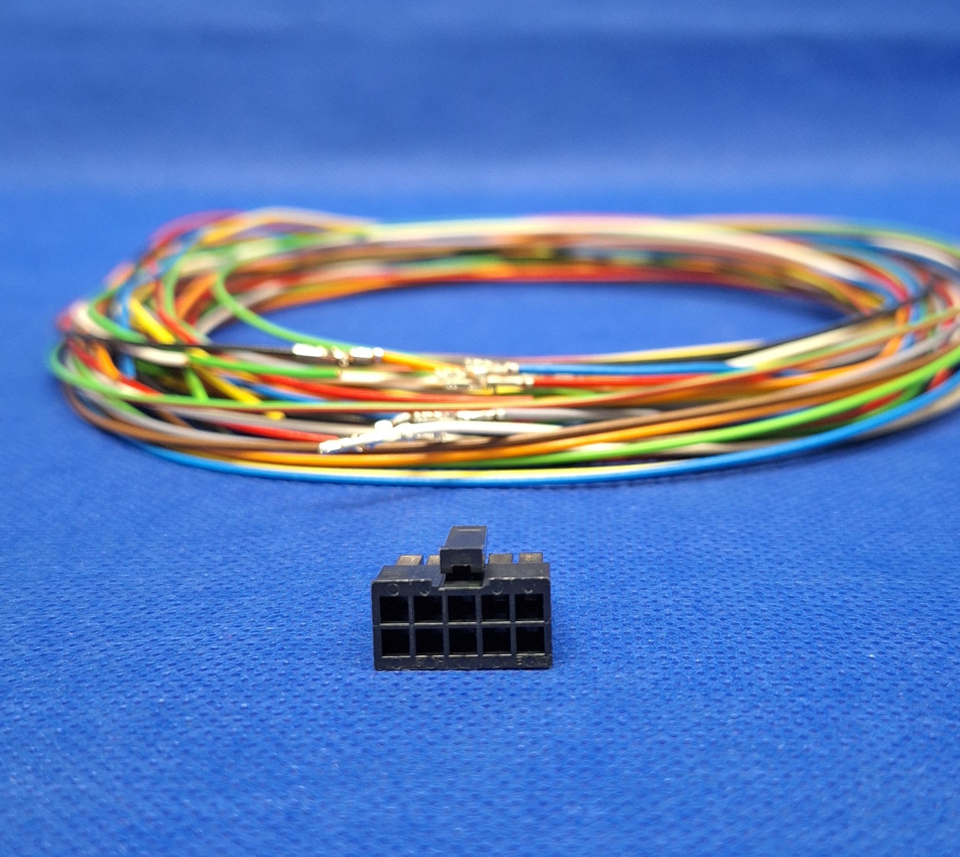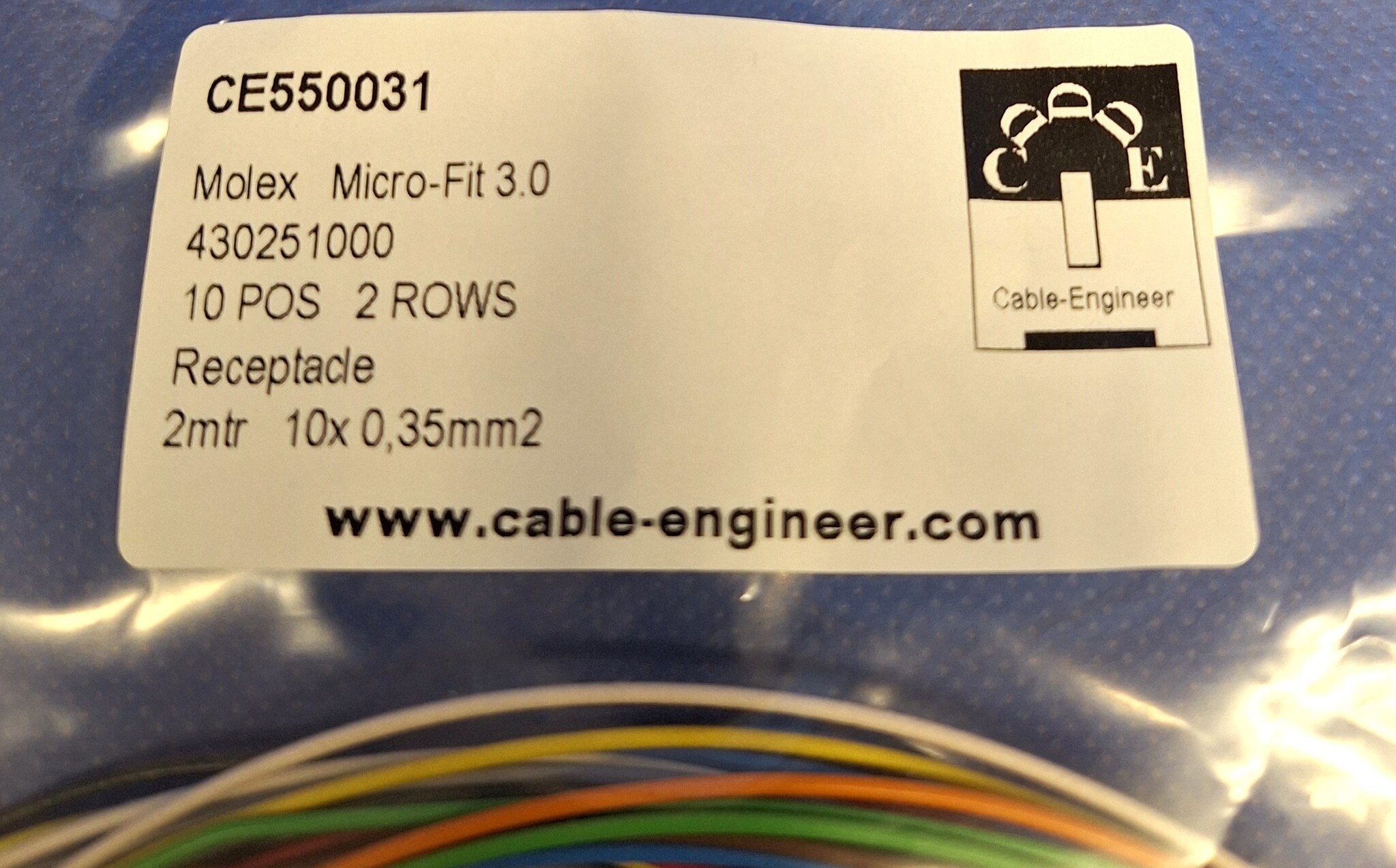 Pre-crimped Molex Micro Fit 3.0 set: 10-positie's / 2-Rij Receptacle Housing met 10x 2m. 0,35mm2 FLRY-A kabel met gekrompen/geïnstalleerde / gemonteerde contacten/terminals.