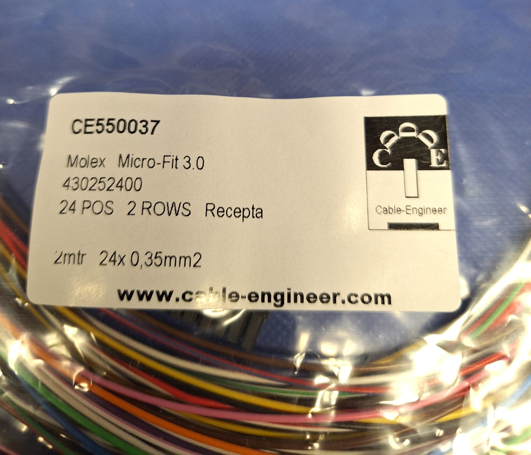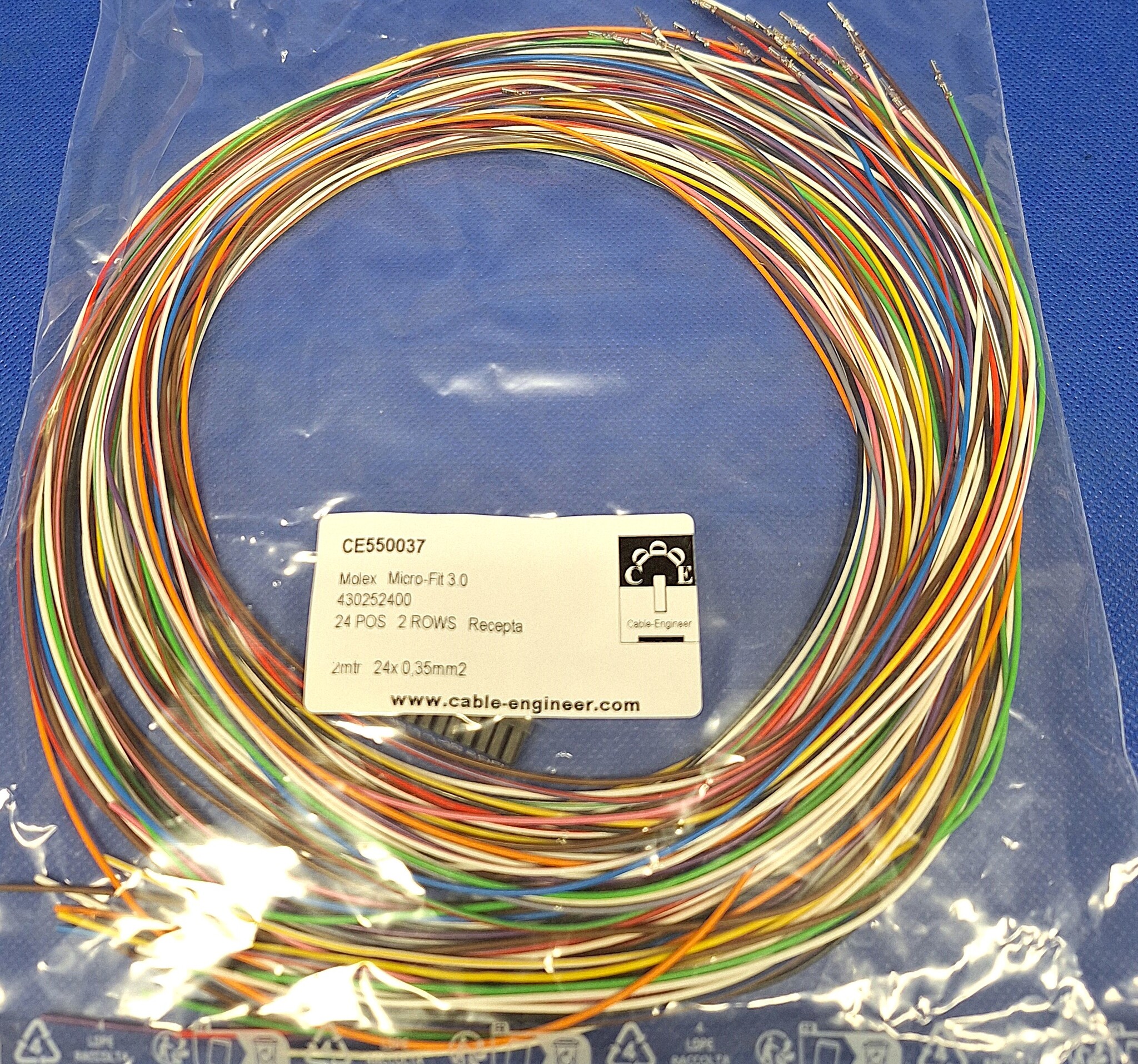 Pre-crimped Molex MicroFit 3.0 set: 24-Pos./ 2-rij Receptacle Housing met 24x 2m. 0,35mm2 kabel met contacten gekrompen