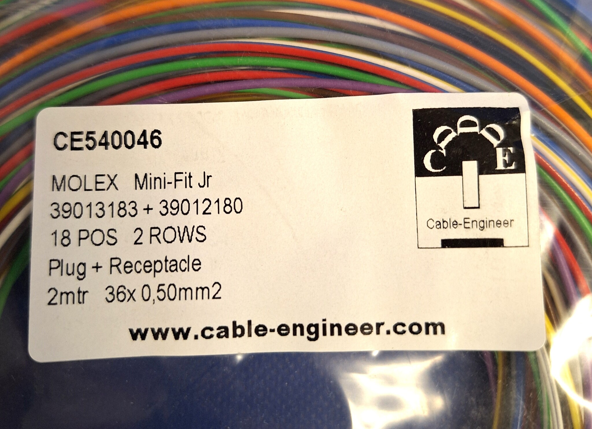Molex Minifit jr. 18-Pos. (2-Rij) Plug & Recept. housing/connector + 36x 2m. FLRY-B kabel 0,50mm2