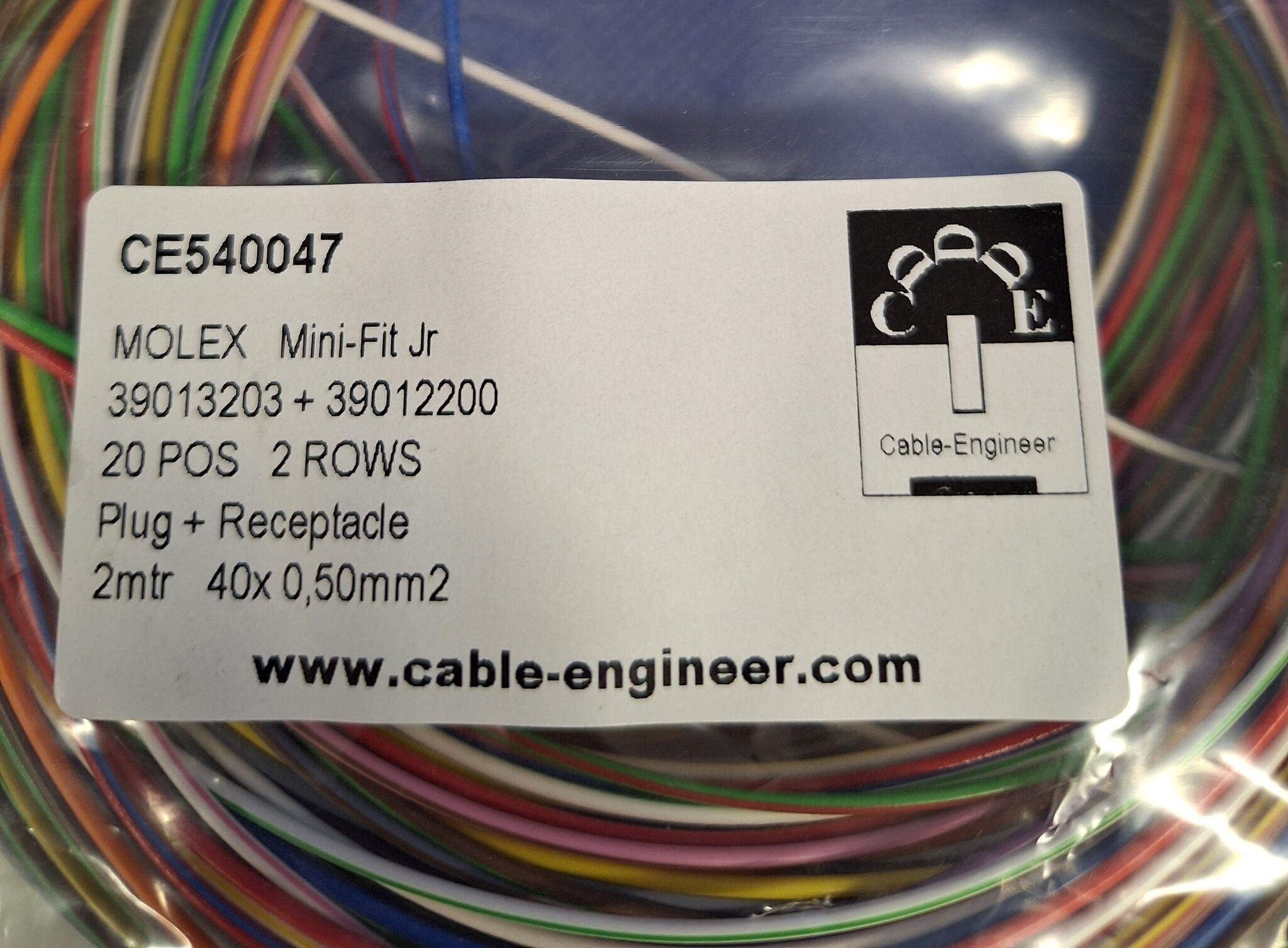 Complete sets uit eigen fabriek met originele Molex MiniFit Jr. connectoren, pre-crimped contacten en professionele 0,50 mm2 FLRY-B flexibele voertuigkabel. De sets zijn 100% gecontroleerd en getest en direct klaar voor gebruik. De kabel met contacten laten wij met opzet los in de verpakking zitten zodat je zelf de volgorde of positie van de gekleurde kabel kan bepalen.