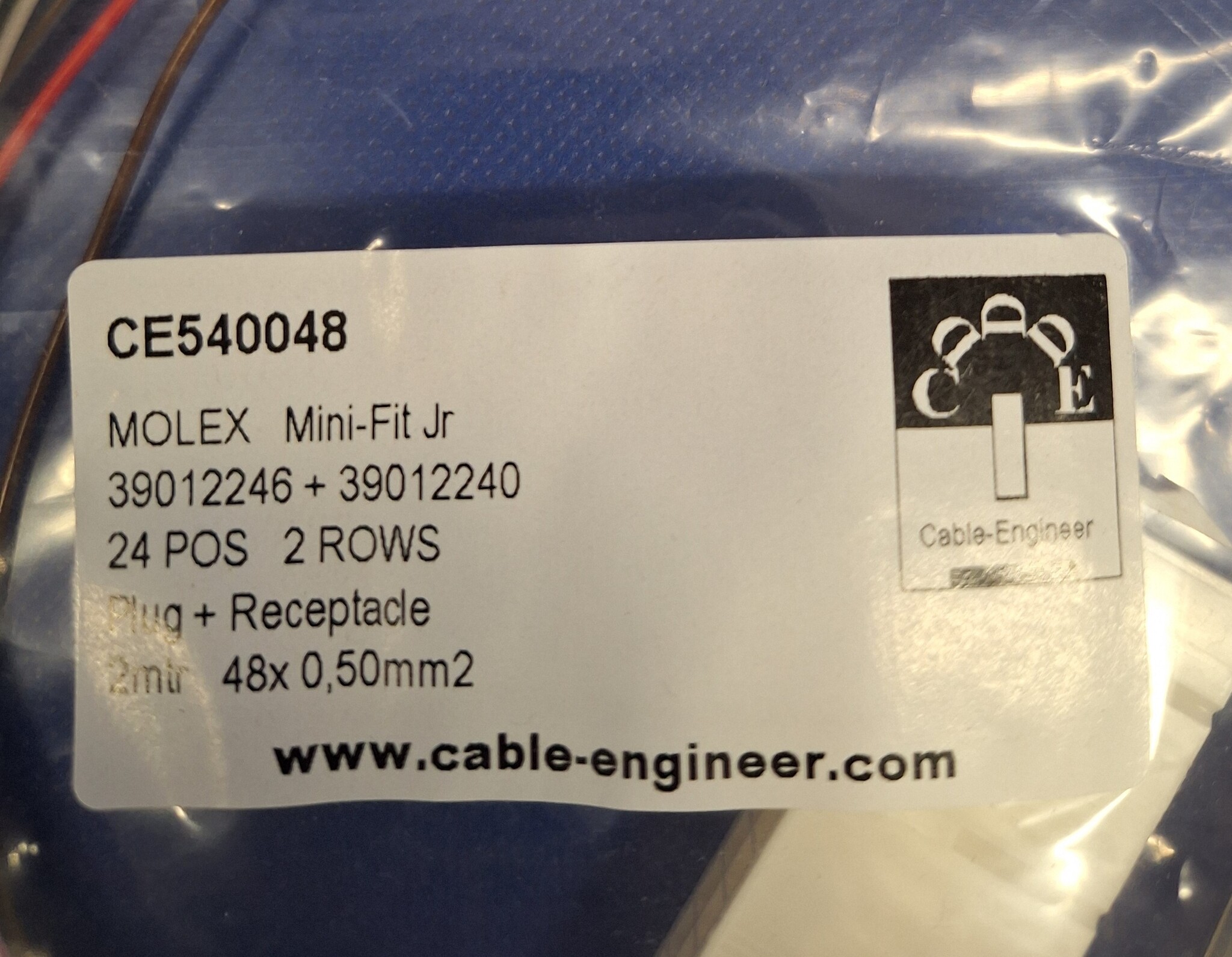 - 24x Molex MiniFit Jr. contact (0039000038) professioneel bevestigd aan genoemde kabel