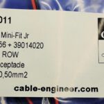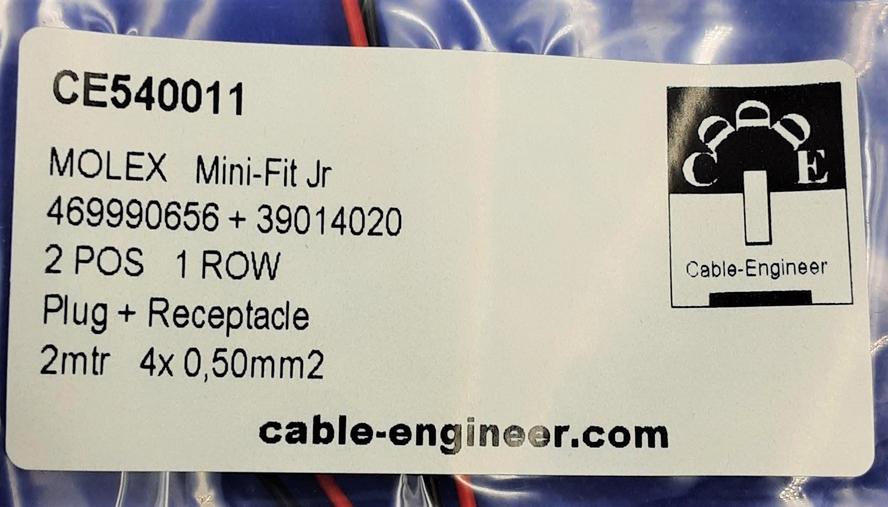- 2x Molex Mini-Fit Jr. contact (0039000040) professioneel bevestigd aan boven genoemde kabel