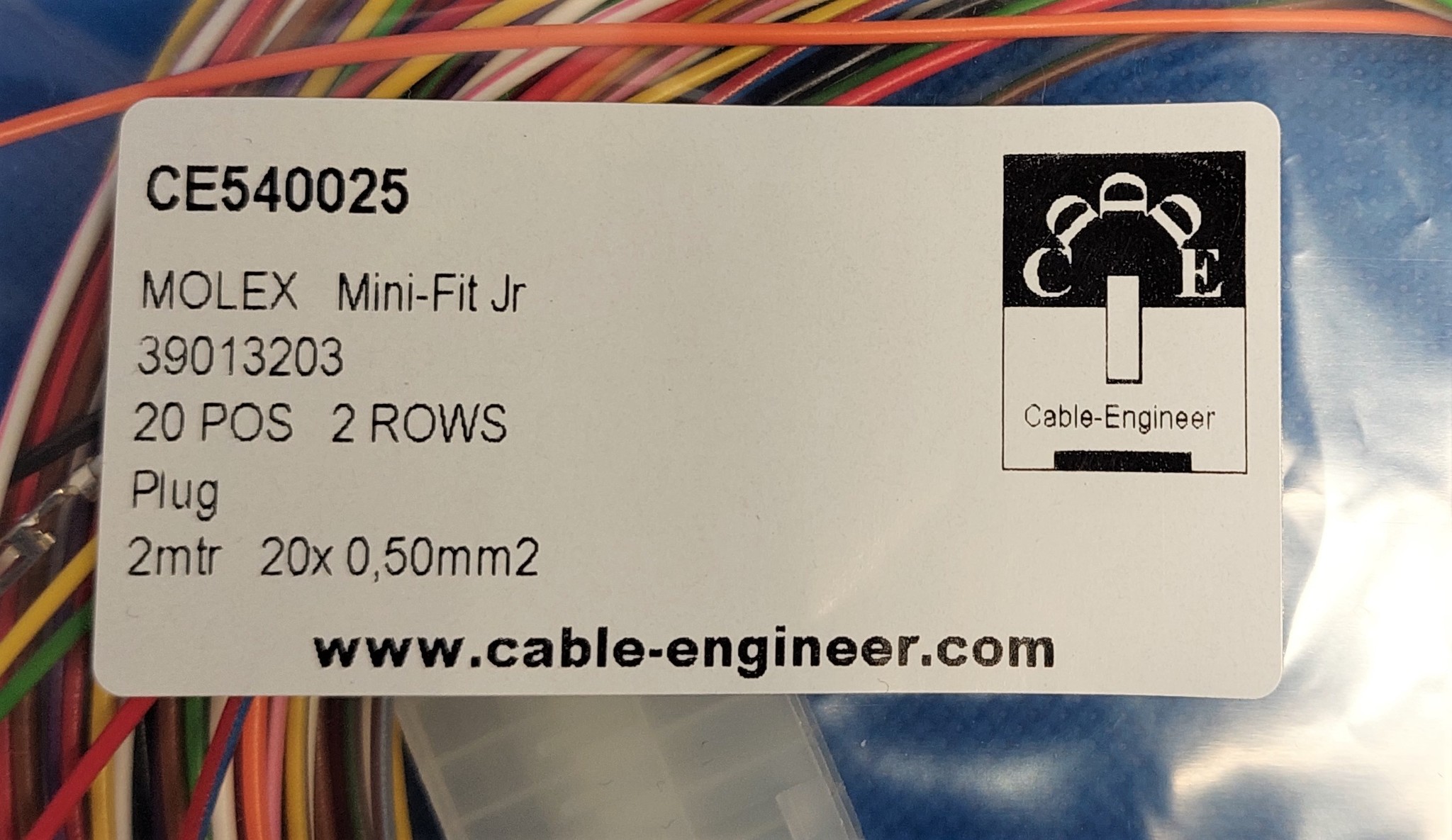 - 20x Molex MiniFit Jr. contact: 0039000040/5558T professioneel bevestigd aan bovengenoemde kabel