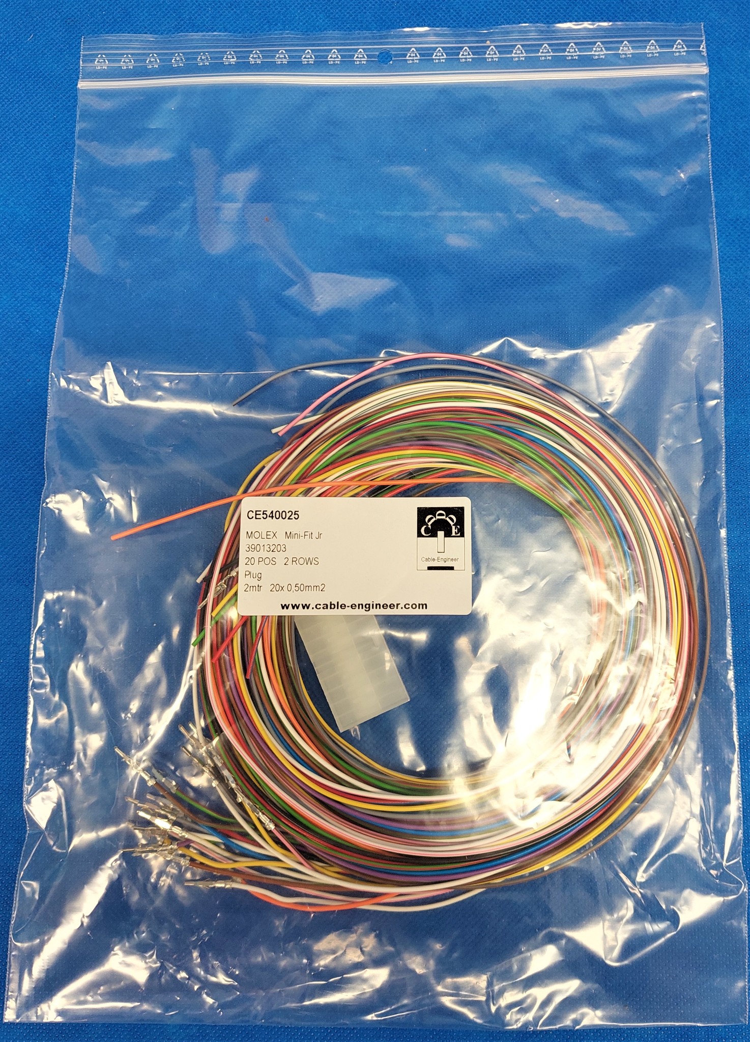 Molex MiniFit Jr. Plug 20-Pos.-2-rij + 20x 2m. 0,50mm2 kabel