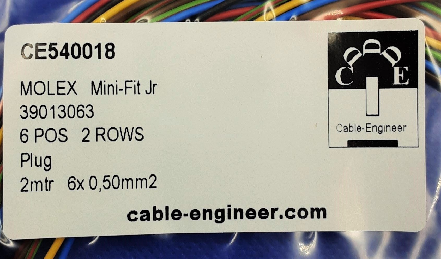 - 6x Molex MiniFit Jr. contact: 0039000040/5558Tprofessioneel bevestigd aan bovengenoemde kabel