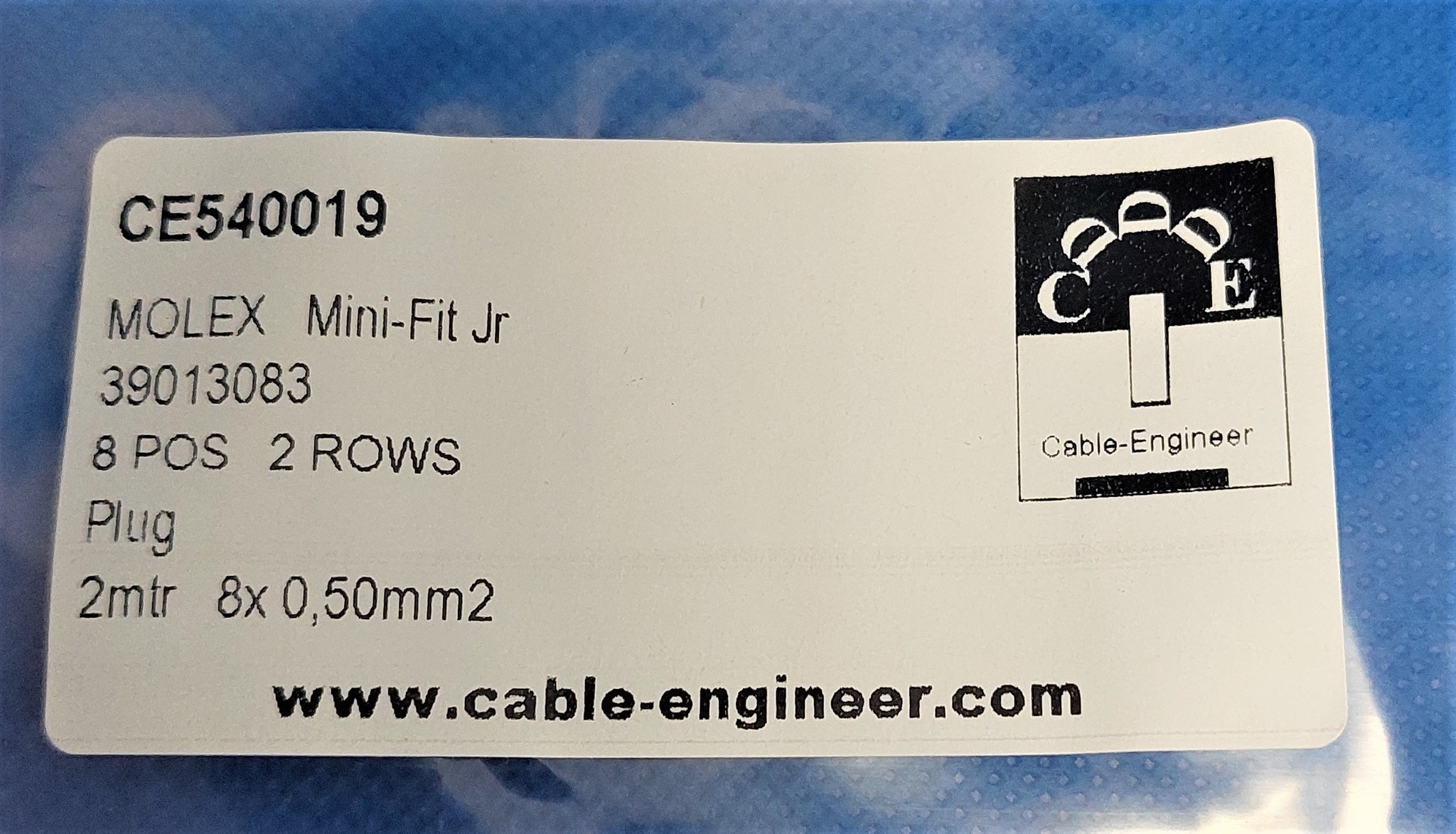 - 8x Molex MiniFit Jr. contact: 0039000040/5558Tprofessioneel bevestigd aan bovengenoemde kabel