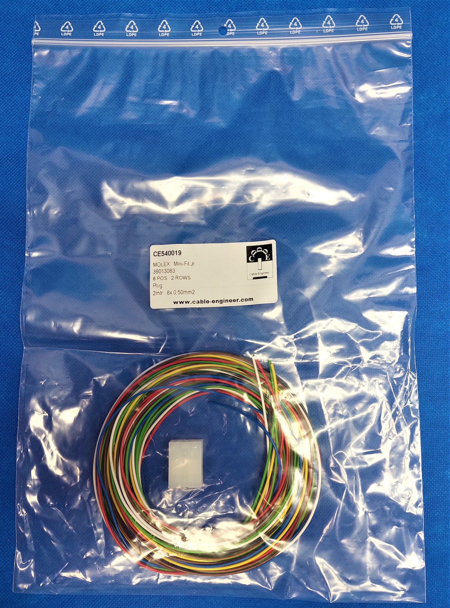 Complete sets uit eigen fabriek met originele Molex MiniFit Jr. connectoren en contacten en professionele 0,50 mm2 FLRY-B flexibele voertuigkabel. De sets zijn 100% gecontroleerd en getest en direct klaar voor gebruik. De kabel met contacten laten wij met opzet los in de verpakking zitten zodat je zelf de volgorde of positie van de gekleurde kabel kan bepalen.