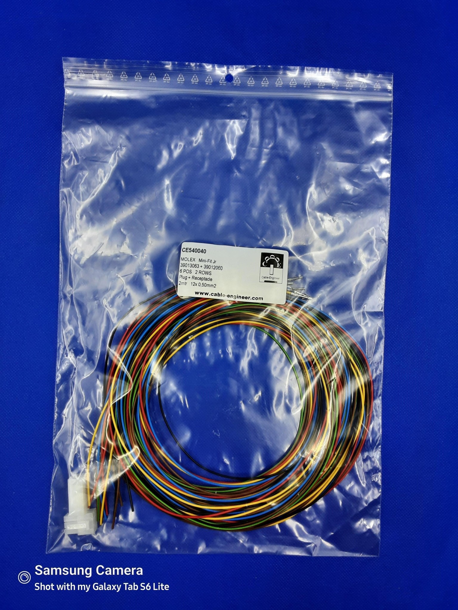 Complete sets uit eigen fabriek met originele Molex MiniFit Jr. connectoren, pre-crimped contacten en professionele 0,50 mm2 FLRY-B flexibele voertuigkabel. De sets zijn 100% gecontroleerd en getest en direct klaar voor gebruik. De kabel met contacten laten wij met opzet los in de verpakking zitten zodat je zelf de volgorde of positie van de gekleurde kabel kan bepalen.