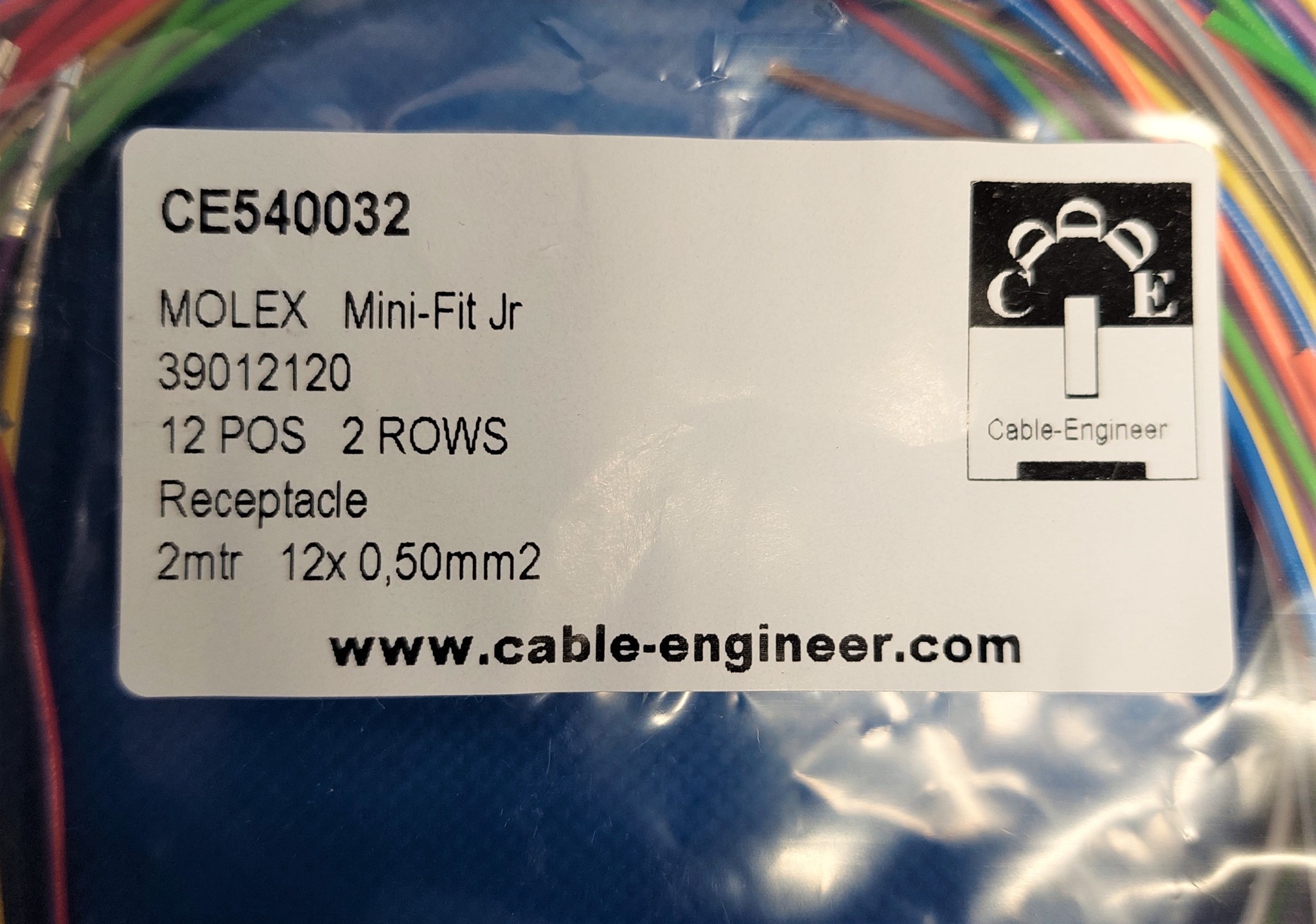 - 12x Molex MiniFit Jr. contact: 0039000038 professioneel bevestigd aan bovengenoemde kabel