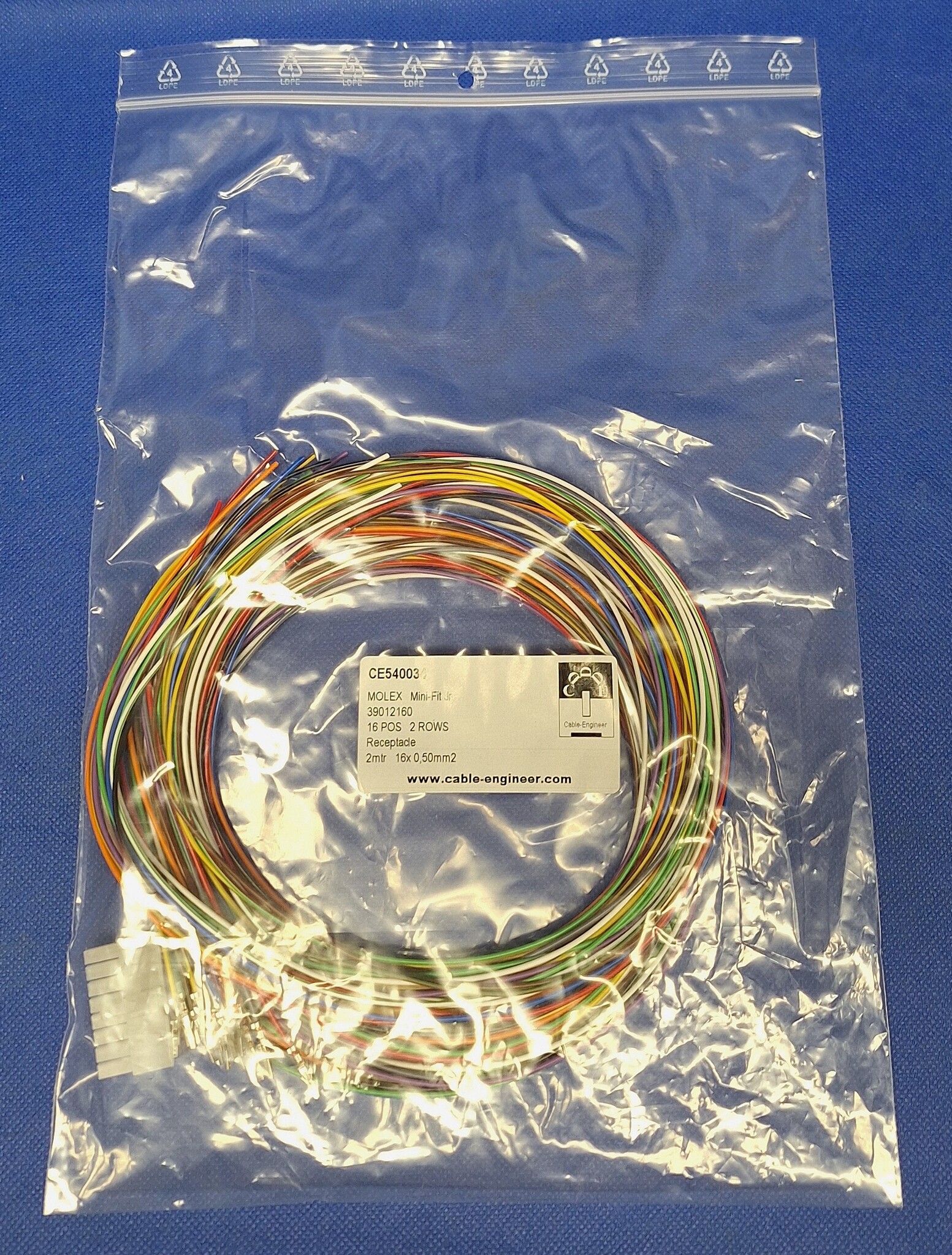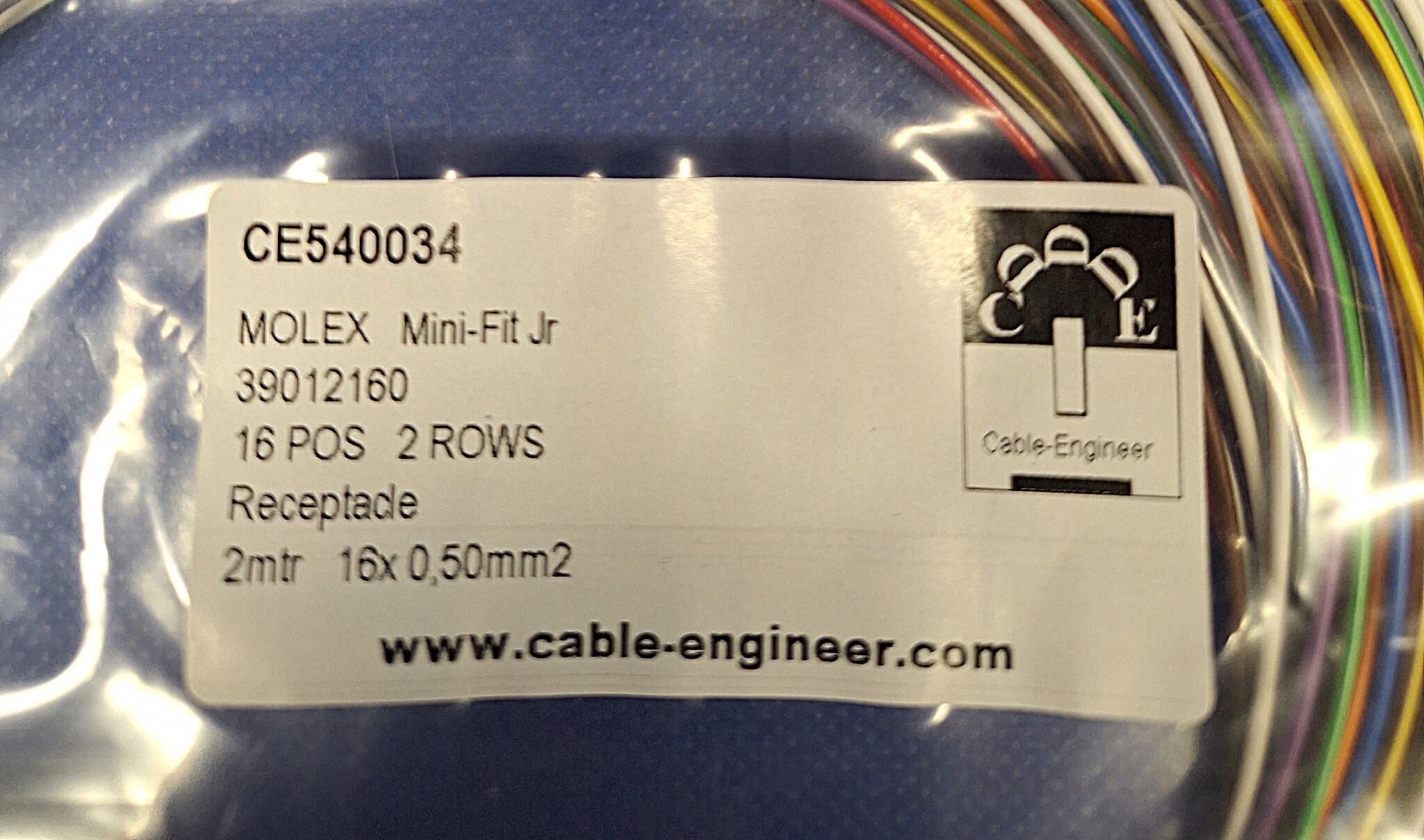 - 16x Molex MiniFit Jr. contact: 0039000038 professioneel bevestigd aan bovengenoemde kabel