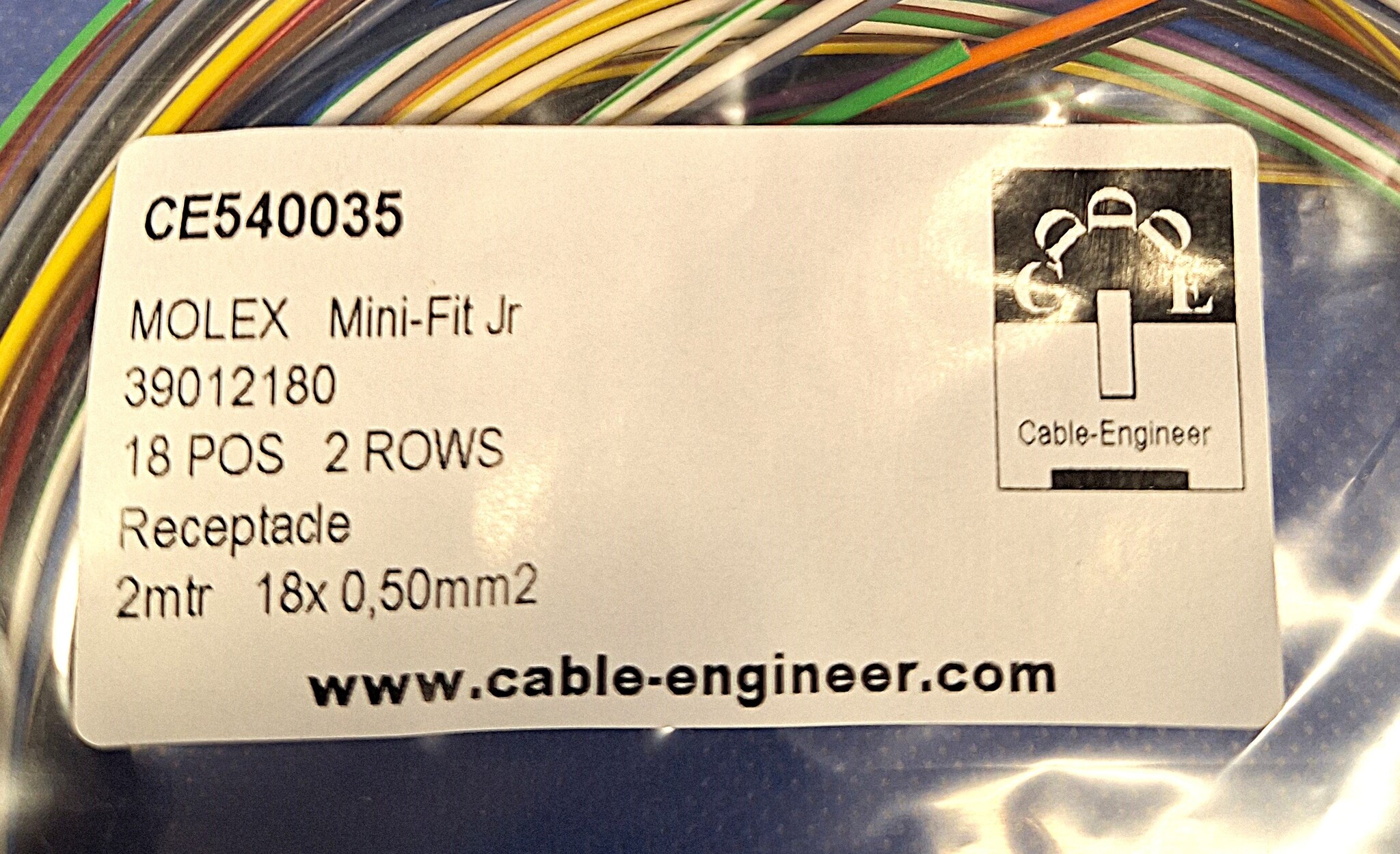 - 18x Molex MiniFit Jr. contact: 0039000038 professioneel bevestigd aan bovengenoemde kabel