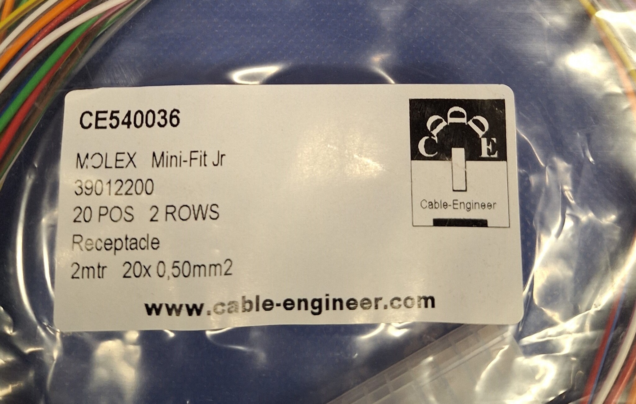 - 20x Molex MiniFit Jr. contact: 0039000038 professioneel bevestigd aan bovengenoemde kabel