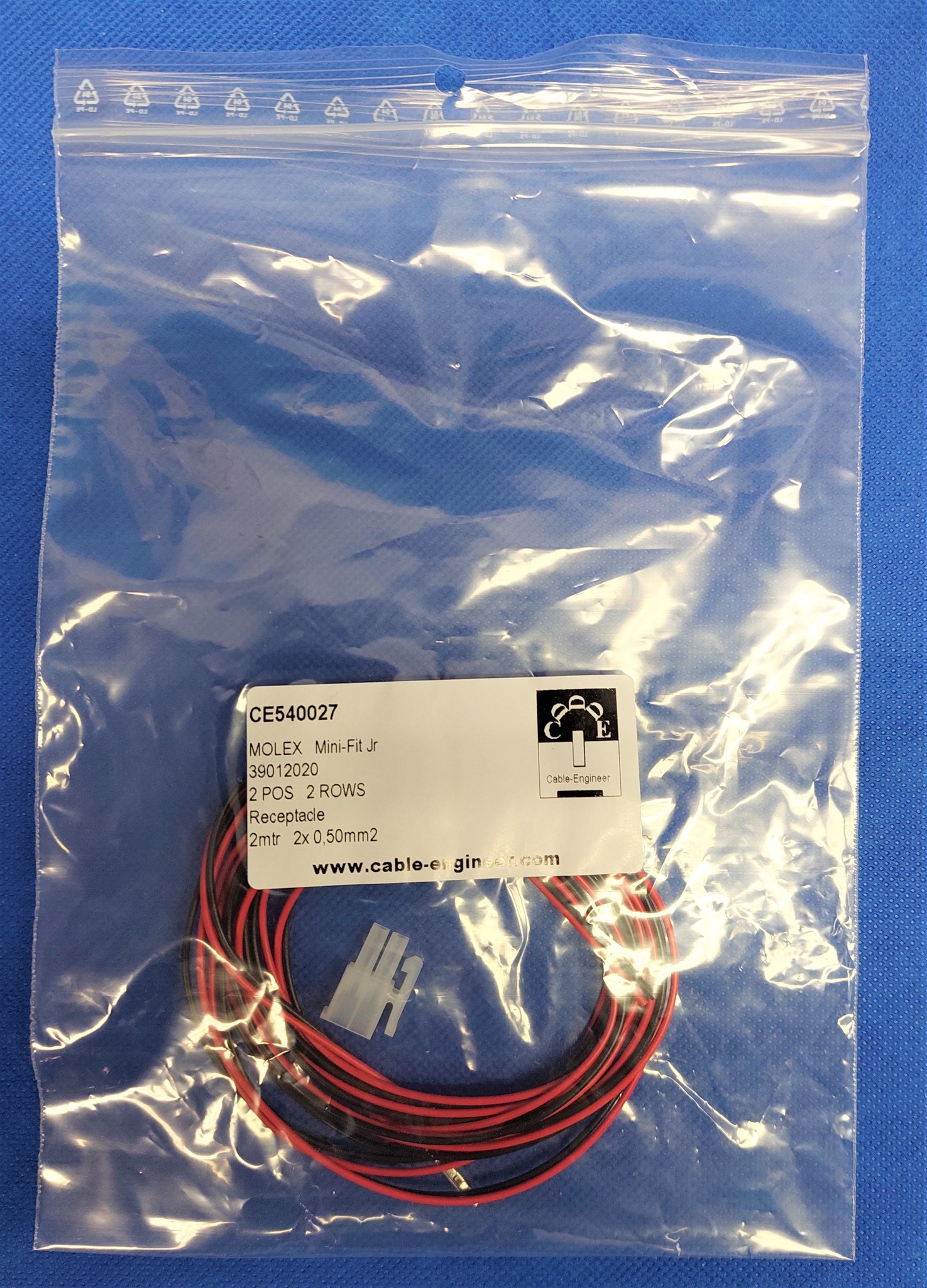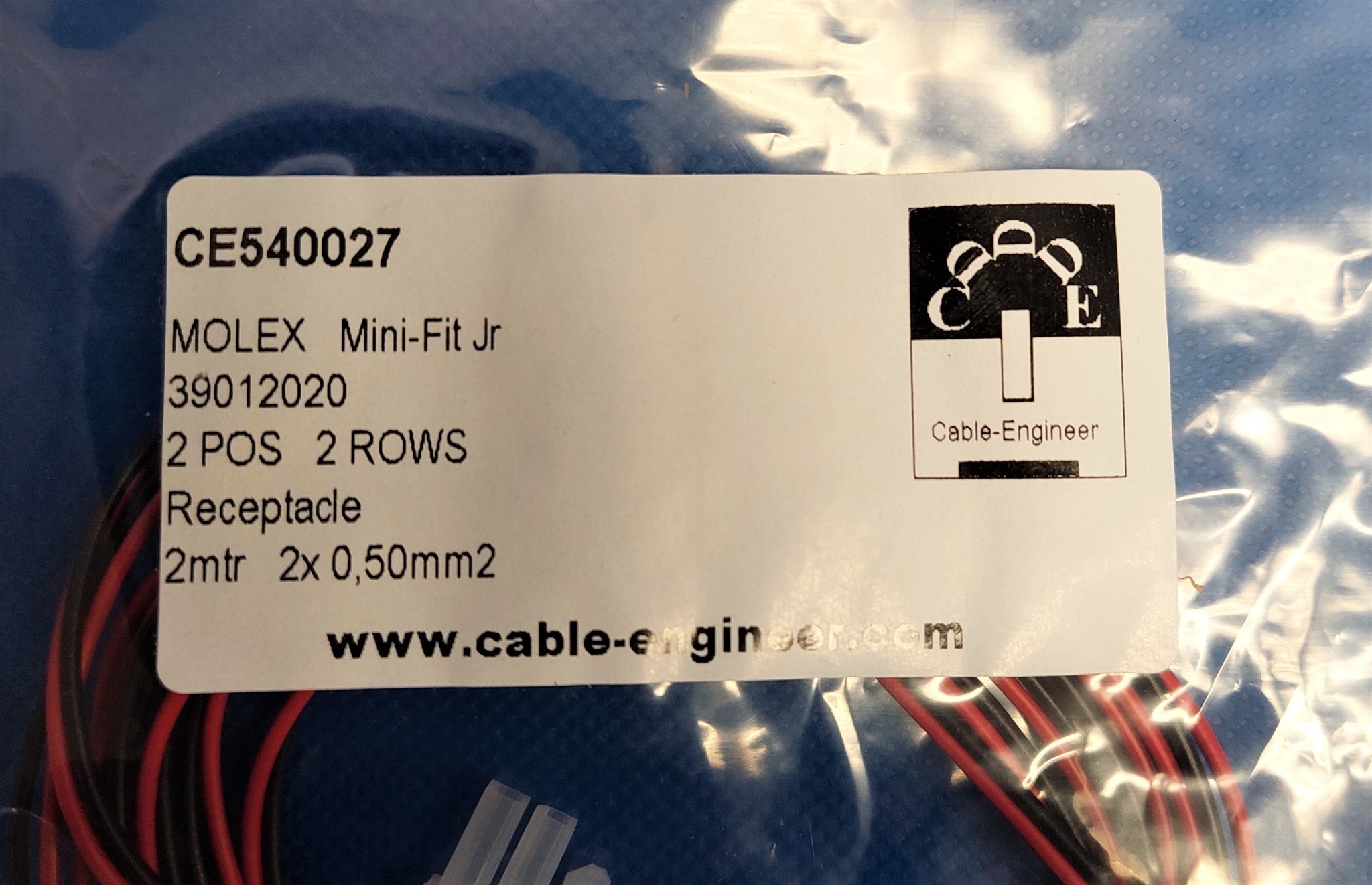 - 2x Molex MiniFit Jr. contact: 0039000038 professioneel bevestigd aan bovengenoemde kabel