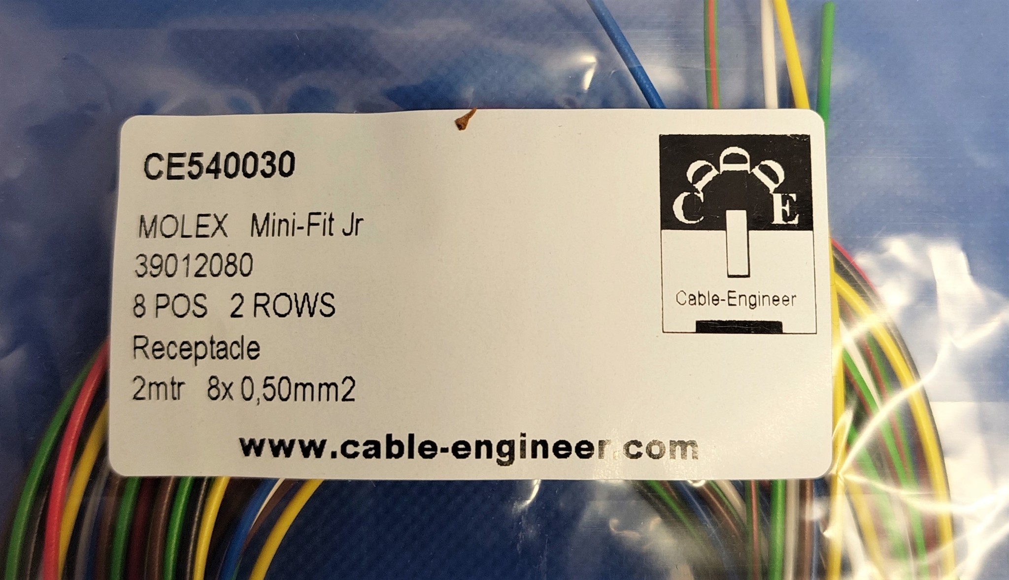 - 8x Molex MiniFit Jr. contact: 0039000038 professioneel bevestigd aan bovengenoemde kabel