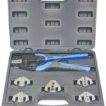 Uitstekende krimptang set met grote en sterke 10" (25,4cm.) ratel krimptang met ontgrendel-mechanisme en 6 verschillende krimpprofielen. Binnen enkele seconden verwissel je de speciaal ontworpen krimpprofiele zodat je direct door kan met werken en waardoor je niet 6 verschillende krimptangen en de daarbij horende kosten hebt.
